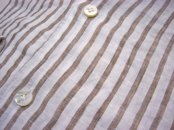 こちらもリネン100%で、ブラウンの太幅ストライプ。