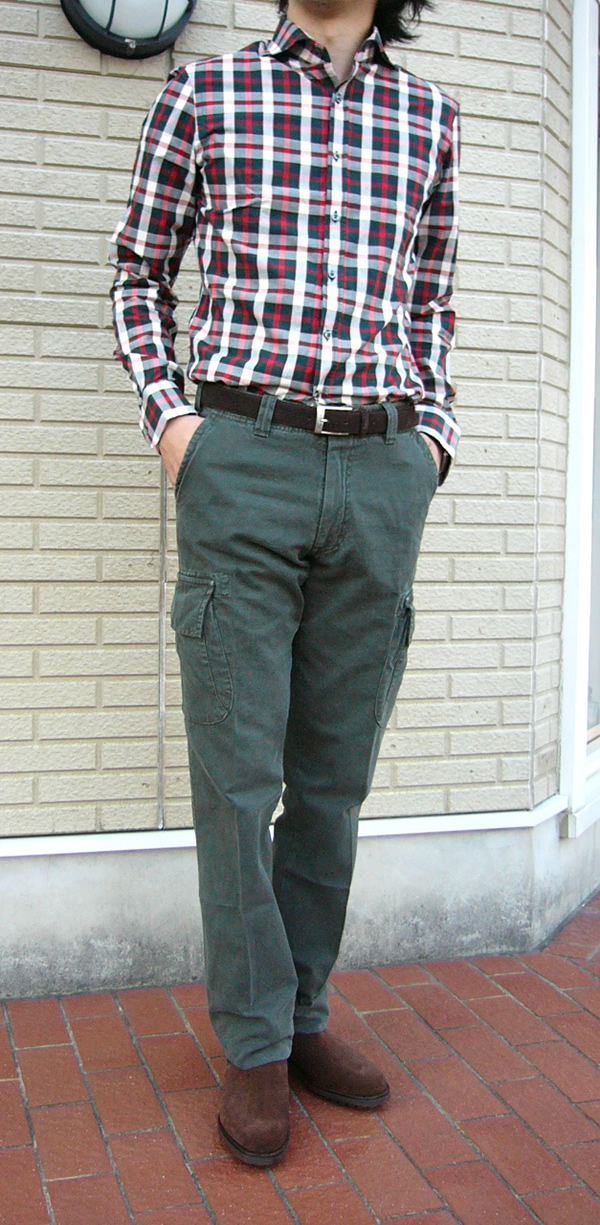 色の組み合わせバランスがとっても良く、レッドやグリーンが目立ちすぎることがないので、ネルシャツみたいなワークなイメージにならず、スッキリきれいめな雰囲気です。