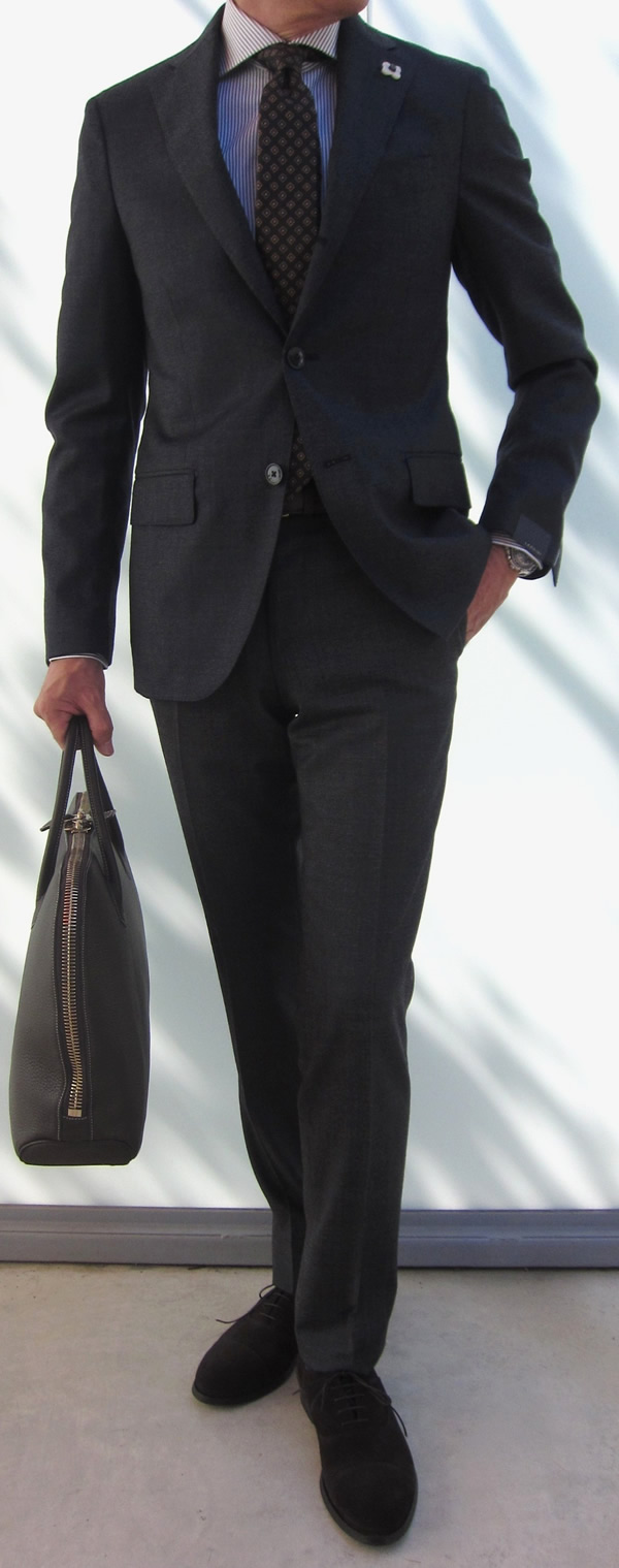 本日は、お客様のリクエストにお応えして【LARDINI(ラルディーニ)】のスーツをご紹介させていただきます。毎回、SUGURU SHOPをご利用いただいているKさん。前回、BOGLIOLI(ボリオリ)のスーツを購入していただいた際、チャコールグレーのサイズが切れていて、ダークブルーでご注文を頂きました。今回、チャコールグレーのスーツを【LARDINI(ラルディーニ)】でご提案することができましたので、早速ご紹介いたします。