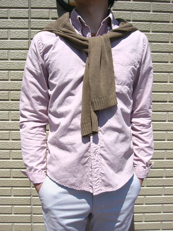 ドレスシャツにきつくウォッシュをかけたようなデザインなので、カジュアルに仕上げたいジャケットスタイルには、ほんとピッタリのアイテムです。