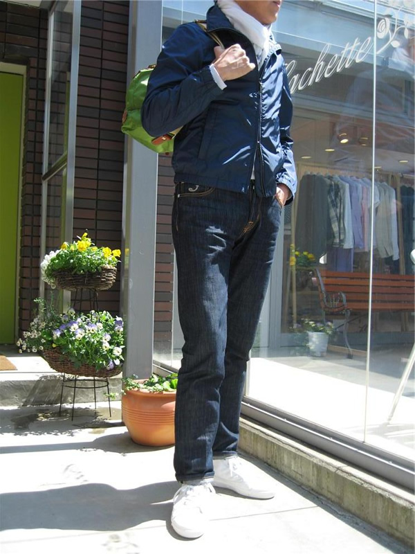 上品さの中に、洗いをかけたカジュアルな仕上がりも、無地のアイテムに上手く表情を付けてくれています。少しラフに崩した、この感じがいいんですよね。