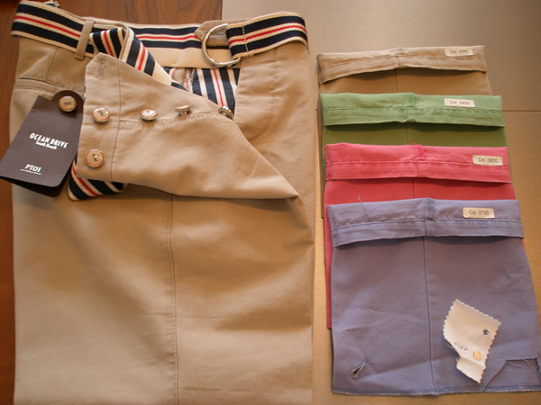 さて、こちらは、今回第一弾として入荷してきたリボンベルト付きのコットンスラックス「OCEAN DRIVE」です。