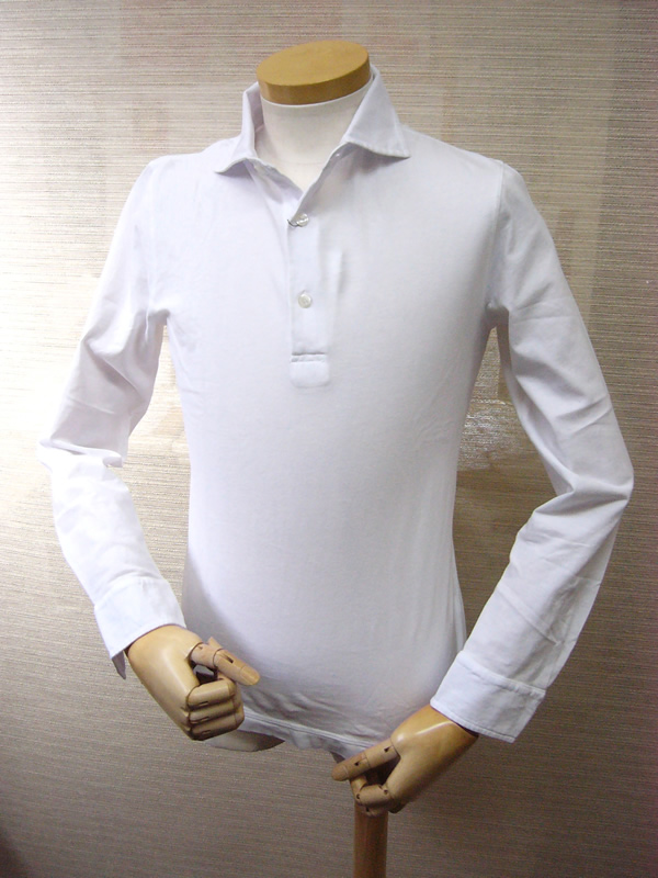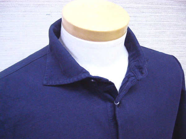 襟は軽快な表情のあるワイドカラーで、シャツのようにキレイにまとまることから、ジャケットのインナーとしても使えます。袖も、シャツと同様のカフス使用になっているので、腕まくりをした姿もとってもかっこ良く決まります。