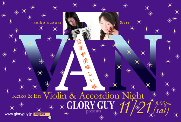 11月21日土曜日、夜8時、グローリーガイ特設ステージにて、アコーディオンとヴァイオリンの演奏会が開かれました。