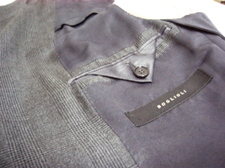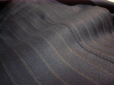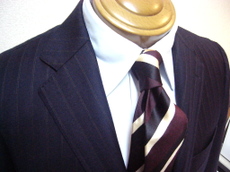 まずこちらは、伊・Loro Piana社のSUPER120'sを使用したブラウンストライプスーツ。生地のグレードは勿論のこと、ブラウンストライプのピッチの間は、ヘリンボーン柄になっているという何とも凝ったデザイン(写真が分かり難くてスイマセン。右下の写真を拡大してご覧下さい)。