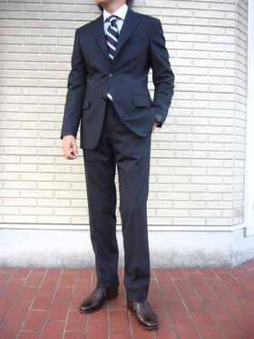 ほぼ、無地と言ってもいいほど分からない柄なので、定番のネイビースーツとして重宝しそうです。