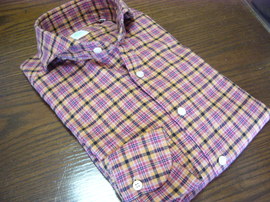 イエローベージュ系にパープルのチェックを入れたもの。ネルということで、やや生地感も厚く、洗いこんだ後の雰囲気も楽しめそうです。