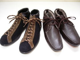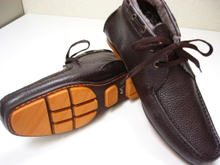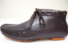くるぶしがかかるぐらいのミッドカットドタイプのライビングシューズ。型押しレザーで、重厚感のある見た目ですが、革は非常に柔らかく、履き心地もとても軽やかなカジュアルシューズです。