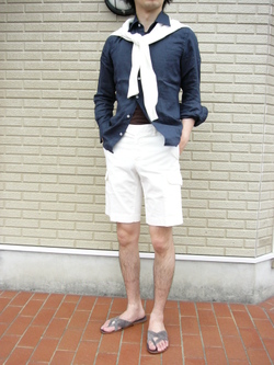 そんな、もやもやした気分を吹き飛ばす、パンツの名門INCOTEXから届いたショートパンツは、爽やか&スタイリッシュなアイテムです。個人的にも、休日はほとんどショートパンツで(店頭でも穿きたいぐらいですが…)、その中でも、私は足が細過ぎるというのもありますが、細身で膝上丈のこの型が好きです。