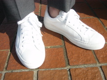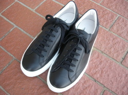 今回のAmbassodorsのスニーカーはレザーを使用し、キャンバス地のカジュアルで丸みのある雰囲気よりも、ややロングノーズでシャープなライン。前々号のように、きれいめなスラックスに合わせても違和感がありません。個人的にはこういったスタイルが好きで、ジャケットスタイルの多い中、足元をカジュアルにできる「ハズシ」のアイテムとして効果大です。