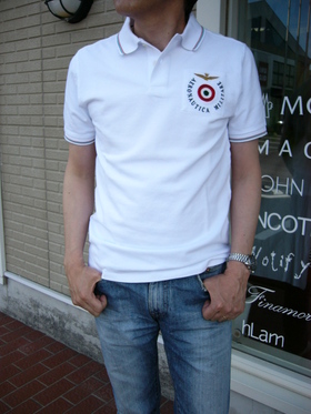 様々な色のポロシャツがある中、このアエロノーティカミリターレのホワイトと杢ネイビーのポロシャツはオススメです。ホワイト地にイタリア国旗の赤、緑のラインがこれからの季節に映えます。また、この杢ネイビーのポロシャツも表情がとても豊かで、洗いざらしで着ると良い味が出そうです。ボトムは、やはりジーンズですね。