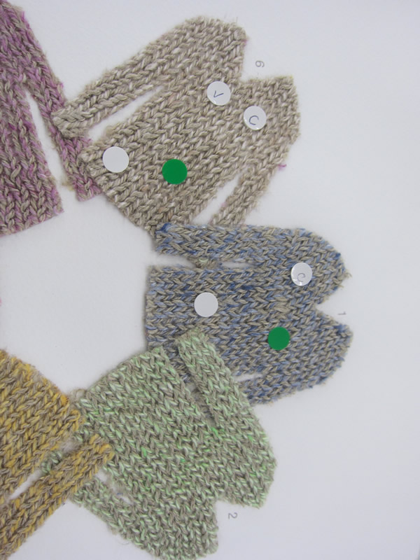 何を選んでいるのか、お分かりでしょうか。これは、【ALTEA(アルテア)】のストールのバイニングです。サンプルはあるものの、後は生地スワッチで選びます。可愛い色合い、柄をセレクトしておりますが、レディース店Cahette(カシェート)用です。