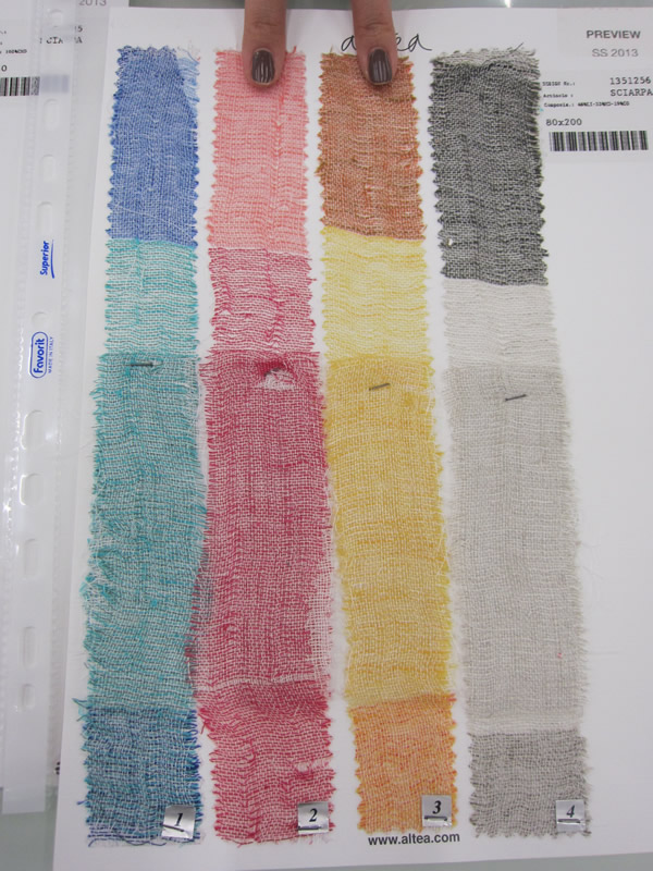 いつも感心するのは、この可愛らしい生地スワッチ。ミラノのショールームといい、働いているスタッフの表情といい、周囲をハッピーにさせてくれる【ALTEA(アルテア)】ワールド。この1月、初めて紹介された現社長(確か、名刺をいただいたはずなのですが、見当たりません)も気さくで陽気なイタリアーノでした。