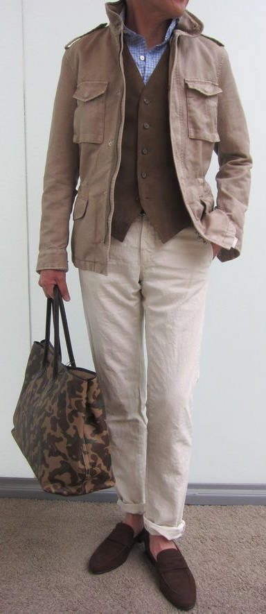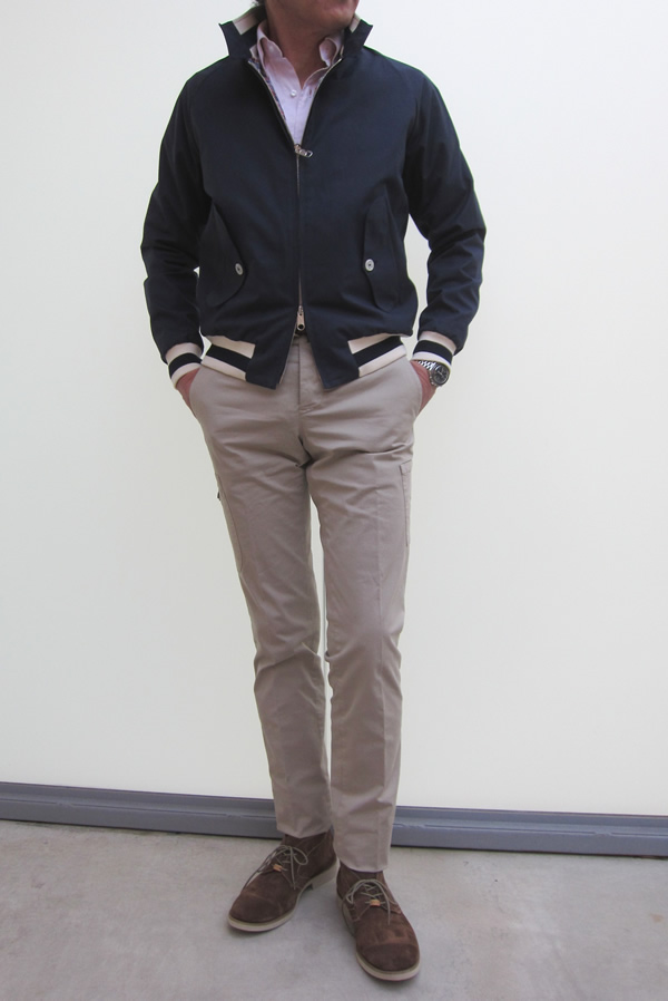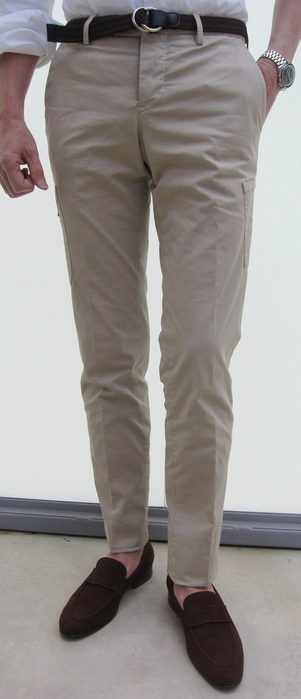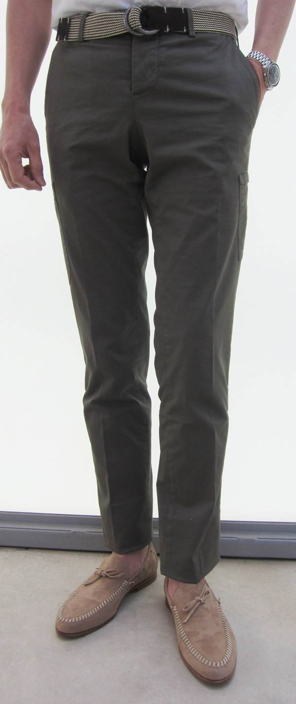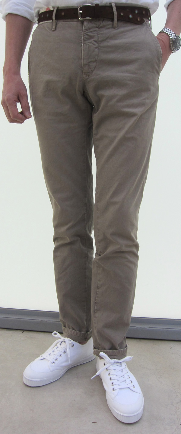 最後は、説明不要のパンツ定番、チノ生地です。ロールアップして【DOUCAL'S(ドューカルス)】を軽快に合わせるのが気分では。