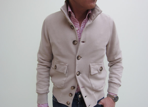 こちらも【Drumohr(ドルモア)】です。ニットブランドなのにシャツも作るかと思いきや、こちらはジャージ素材のシャツ型。変な説明ですが、シャツと言うよりシャツ型カット&ソーと言った方が良いのかもしれませんね。