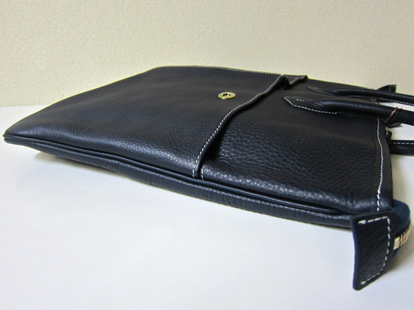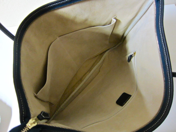 引き続きこちらも、同型トートバッッグのダークネイビーです。かなり濃く深いネイビーは、遠目にはブラックにも見えるほど。