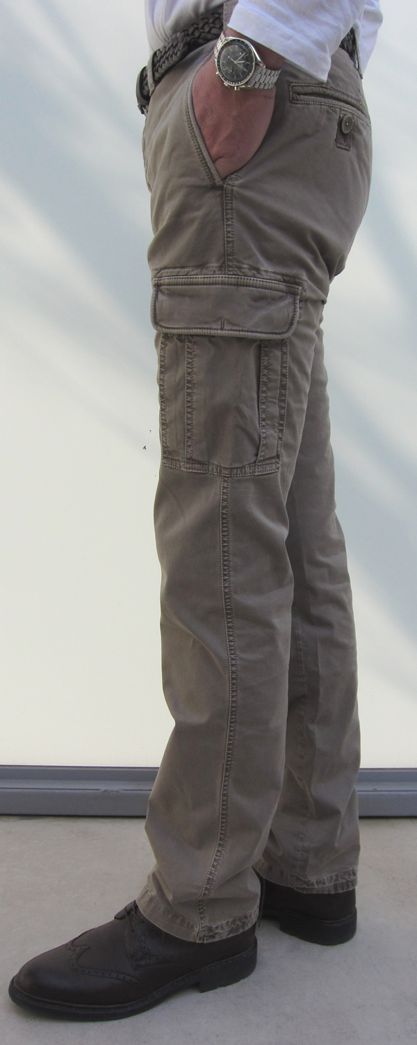 写真がセピア色になってしまいましたが、いい雰囲気なのでそのまま使います。カーゴ人気は一段落したというものの、コンスタンに売れ続けているのが、こちらの【ICON】のカーゴパンツ。製品染め&製品洗いの粗い雰囲気の中にもマチなしポケットの付いた細身のシルエットは優雅で上品です。カーゴを敬遠されていたお客様にも受け入れられているカーゴの名作です。