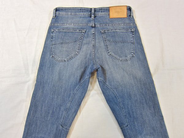 こちらは、濃い色のデニムをベースに、やや洗いとダメージをかけたジョッパーズデニムです。最も使い易いのが、こちらではないでしょうか。
