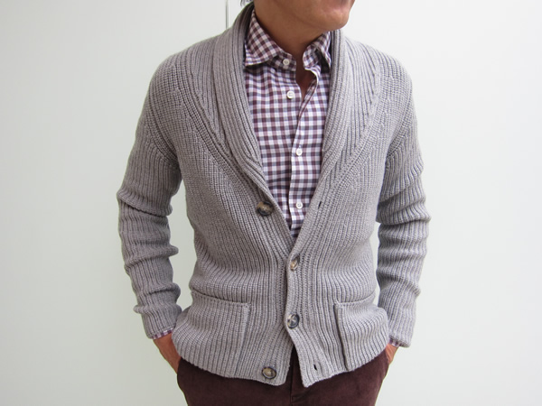 まずご紹介するのは、皆さんが最も気にしているローゲージのショールカーディガンです。