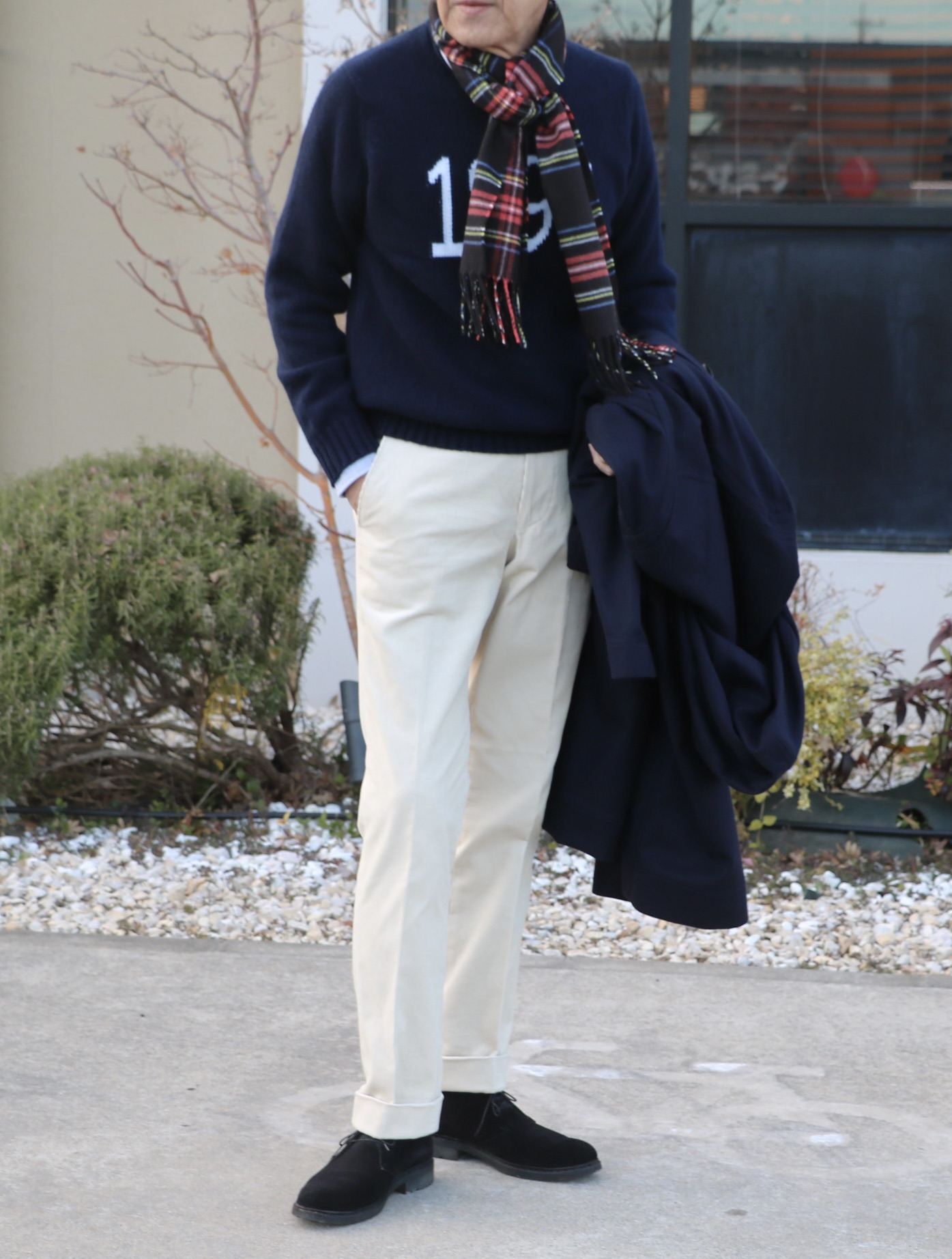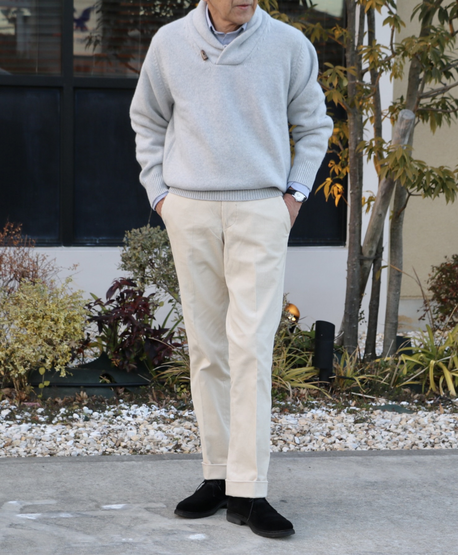 Drumohr/ドルモアのモックネックセーターとINCOTEX SLACKS/インコテックス スラックスの「100」コットンストレッチ チノパンツは、既にストックセールでお値打ちになっております。