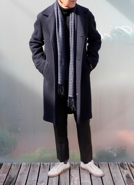 少し前の商品になりますが、現在の為替を考えれば、割引後の価格は信じられません。良き時代の贅沢な素材と言っても過言ではありません。青の濃淡で織りなすピュアウールのダイヤゴナル柄は特別感があり、しっかり打ち込んだ生地は風をも遮断。オンよりオフにと、これからの季節、大いに役立つ色気のあるコートです。今が狙い時と言い切るのは、次に手に入れることのできないことを知るバイヤー目線の独り言だと思ってください。