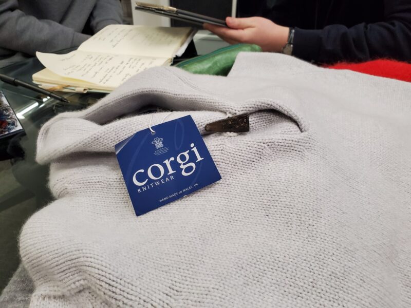 サウスウエールズからロンドンまでサンプル持参で足を運んでくださったcorgiファミリーでデザイナーのリサさん。カシェートバイヤーがサンプルの中で選んだのが、ショールカラーのプルオーバーニット。