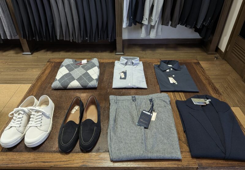 新作のTAGLIATORE/タリアトーレにXACUS/ザッカスのシャツ、ボトムは昨日ご紹介させていただいたRota/ロータのライトオンスデニスラ。そして、今、私が気にしているALESSANDRO GASPARINI/アレッサンドロガスパリーニのモカッソローファーです。