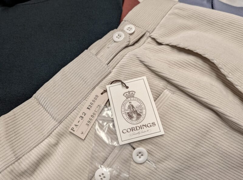グローリーガイにあれば、即買いですが、置いてあるのはカシェートです。なんせ、ロンドンのショップに何回も通ったほどカシェートバイヤーのお気に入りのショップブランド【CORDINGS/コーディングス】。勝手に購入するわけにはいきません。どうやら、すでにカーキを所有しているナグラさん。色違いのブラウンを購入希望ですが、未公開の為、許可が下りていないようです。