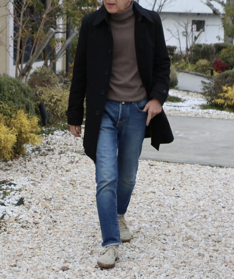 本日の出立です。ジャケットは BOGLIOLI/ボリオリ、デニムパンツは JACOB COHEN/ヤコブ・コーエン、足元のチャッカブーツは ANTONIO PIO MELE/アントニオ・ピオ・メーレと、もう20年以上変わらない私のワークスタイル。唯一、ニットだけがWILLIAM LOCKIE/ウィリアムロッキーと英国ものです。以前は圧倒的にイタリアものでしたが、価格が上がり過ぎて手が出しづらいのです。最近、購入したニットは全て英国生産。寒がりな私にとっては頼りになります。