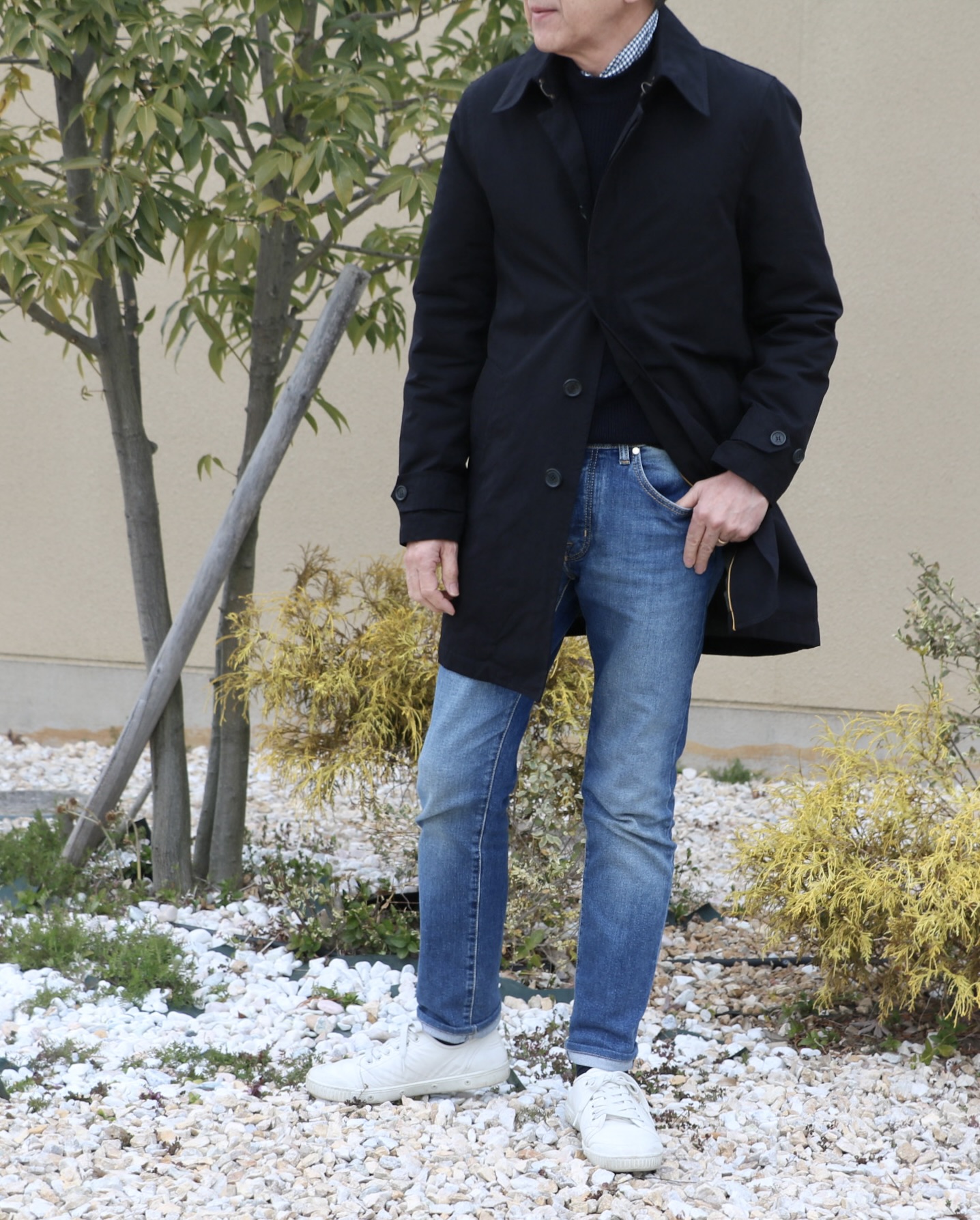 もう何年前から愛用しているような【Sealup/シーラップ】のバルカラースリークォーターコートです。いつものスタイルに羽織るだけで完成してしまいます。現在、私のクローゼットにはトレンチコートとスプリングコートが収まっており、さらにモデルが増えることが予想できます。