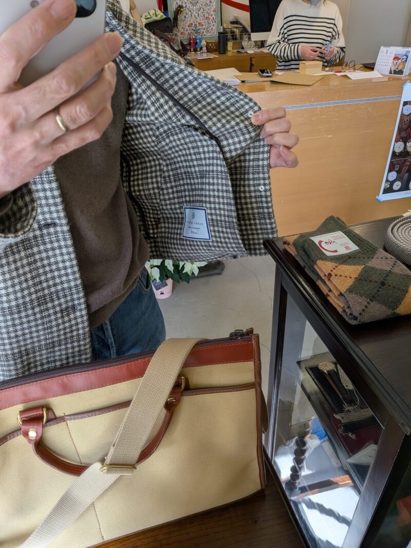 ロンドンを拠点とする最高品質のビスポークメーカーです。詳しくは、カシェートでご案内させていただくと思いますが、残り一点のみとなっています。それも、私が着ることのできるサイズです。ただ、問題はカシェートバイヤーがすでに所有していること。かつて体験したことのない着心地と独特な雰囲気があります。アンライニングの軽い仕立てなんですが、とても暖かい。長年の経験を持つスタッフが、小さなアトリエで全て手作りしている特別感のある服なんです。