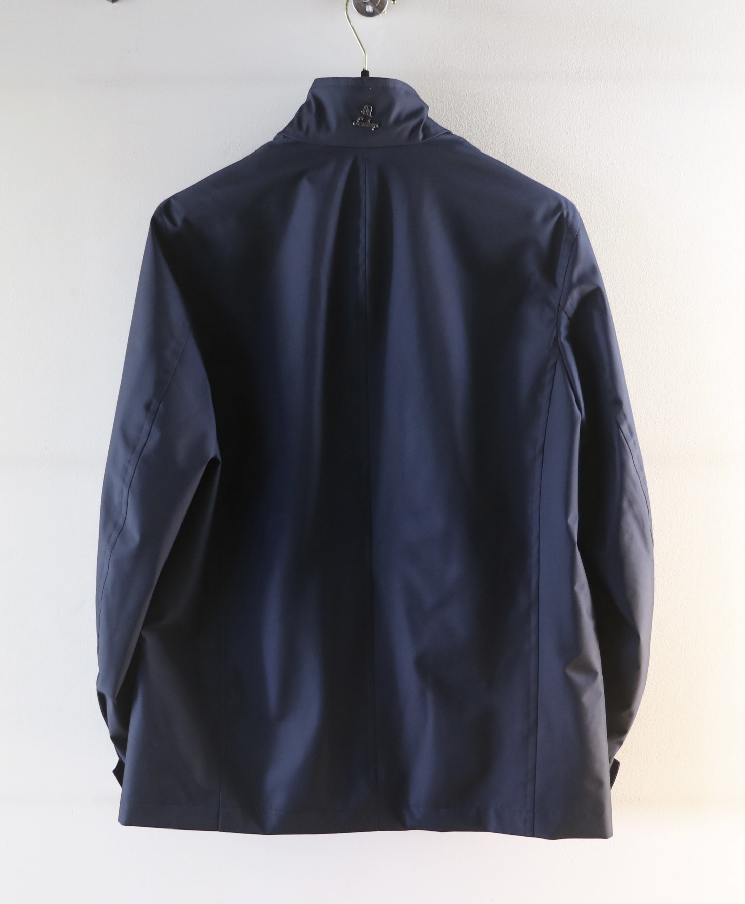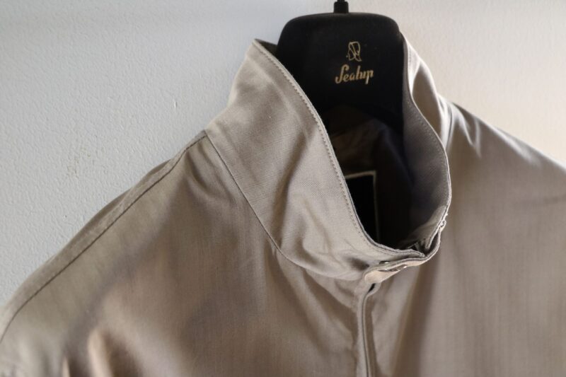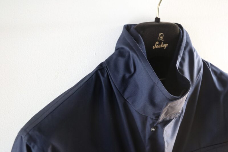 スタンドカラーのショートブルゾン「DIOGENE」。コットン57%・ウール43% Lolo Piana のStorm System