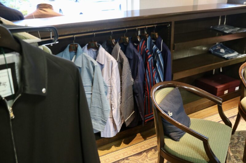 空いたスペースを利用して英国スタイルのご提案でもしようかなと思い、ハンガーにかけてしまいました。現在、左から二番目、三番目のパジャマを使っておりますが、そろそろ足したいと思い、サイズ確認をしたところ、Mサイズが全て完売。かなりのショックを受けております。カシェートバイヤーに追加オーダーを確認すれば、ずいぶん価格も上がっており、最低でも5万円以上。今のところ、追加オーダーの予定はないということでした。残念ですが、持っている2枚のパジャマを大切に着るしかありませんね。