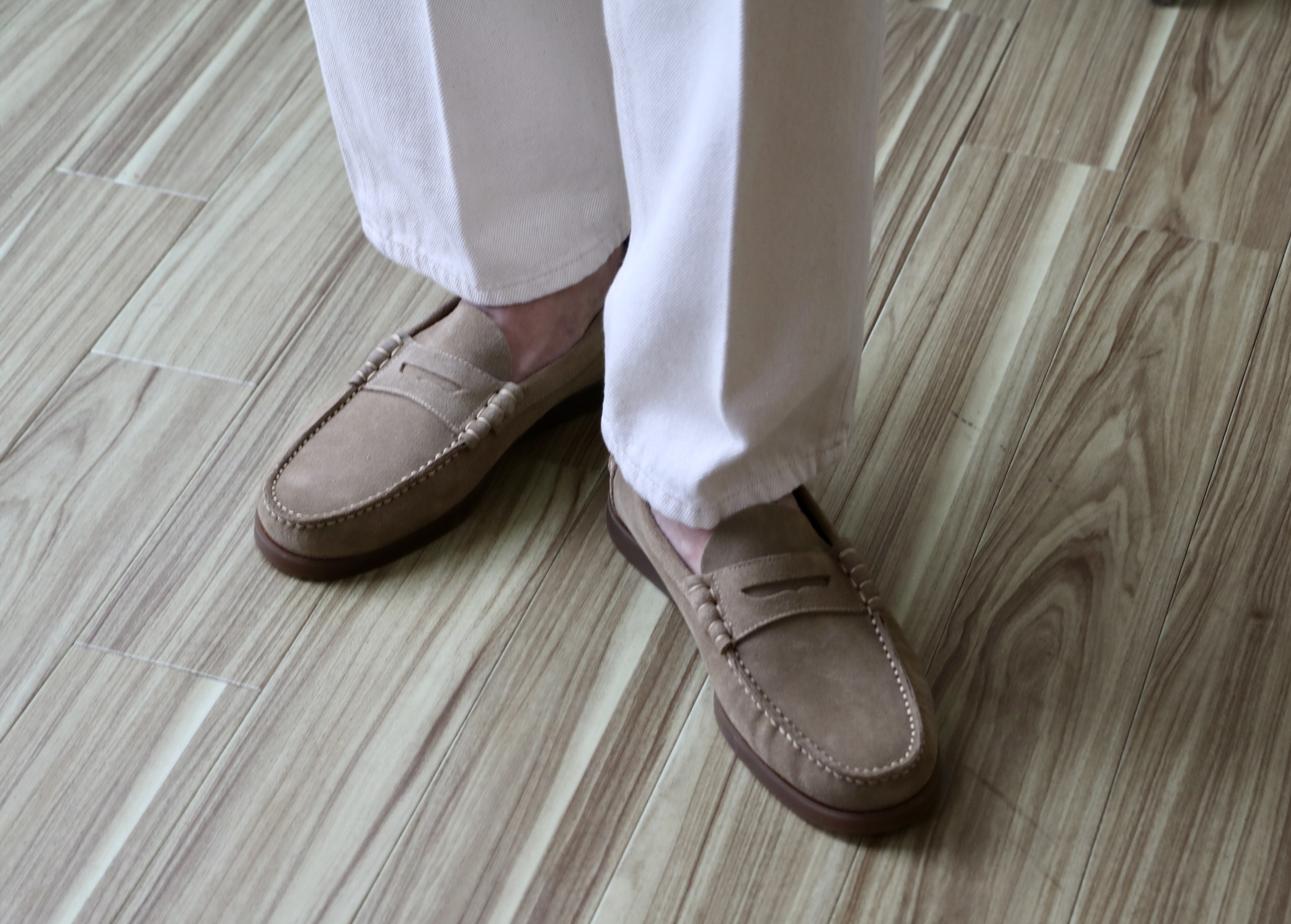 サンドベージュスエードに履き替えた瞬間、季節が一気に進みます。春なら桜の咲く小径を、夏は青と白とのコントラストが眩しい砂浜を歩きたくなるはずです。私の着用サイズは7.0になります。