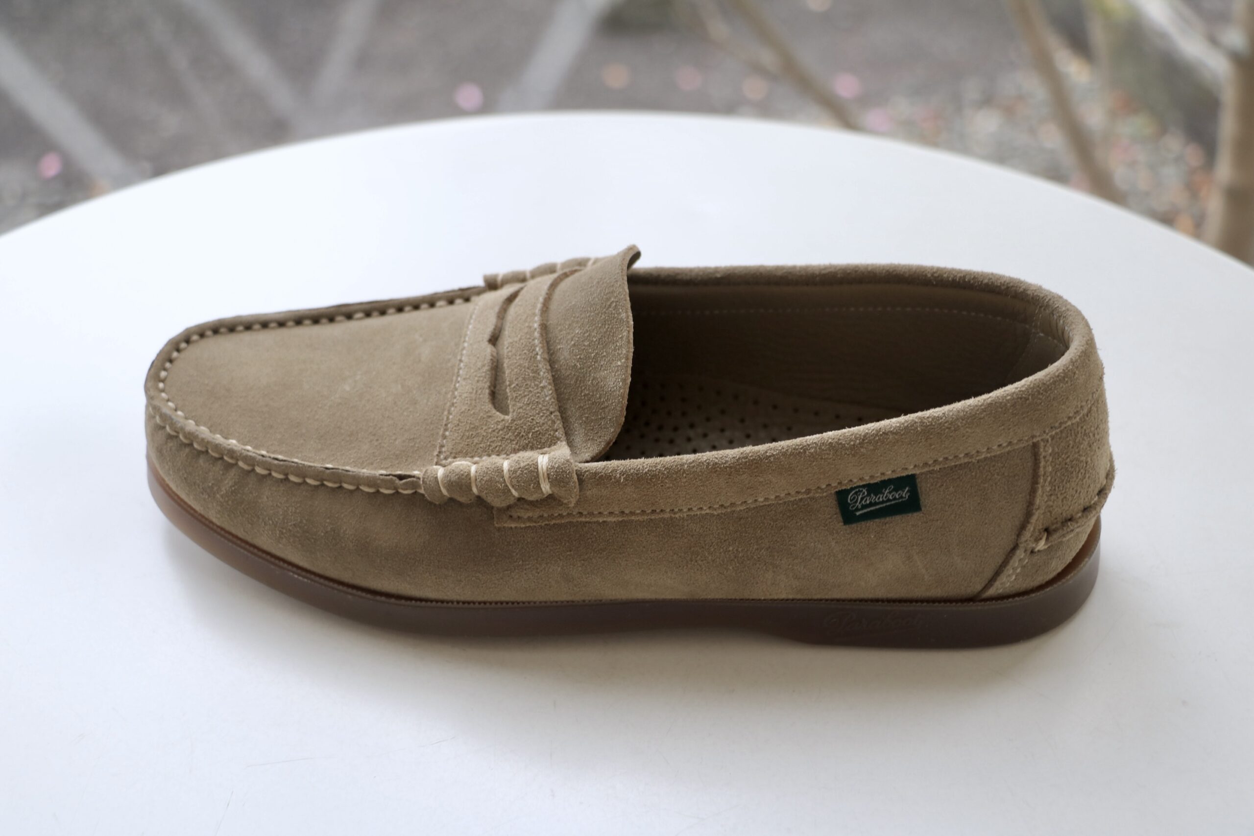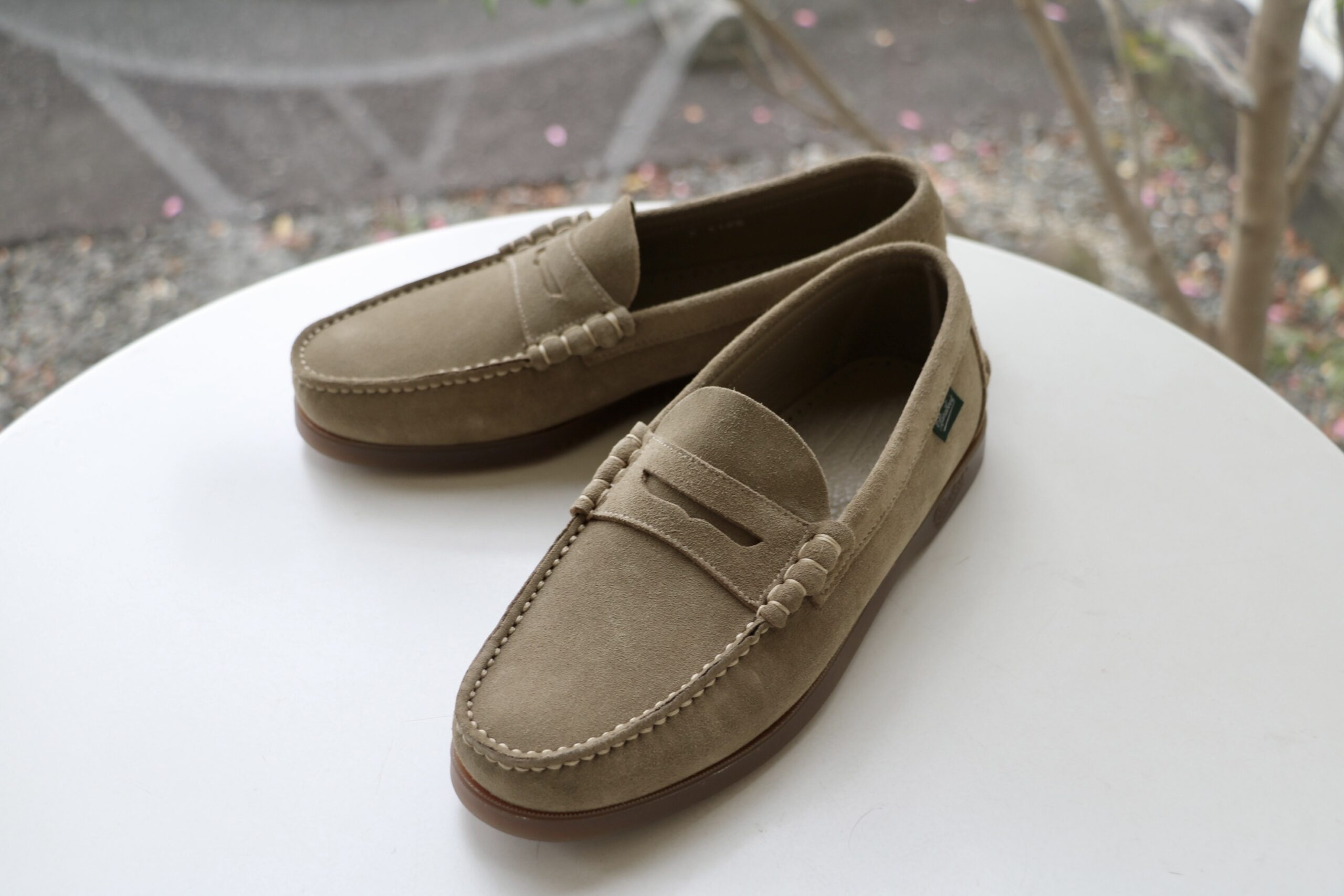 蔵庫/マガジーノで寛ぐ私?ではありません。本日も足元に注目していただきます。月曜日にご案内させていただいた【Paraboot/パラブーツ】の30周年記念限定モカシンシューズ「BRIAC/JANNU」は、おかげさまで7ハーフのみとなりました。ありがとうございます。