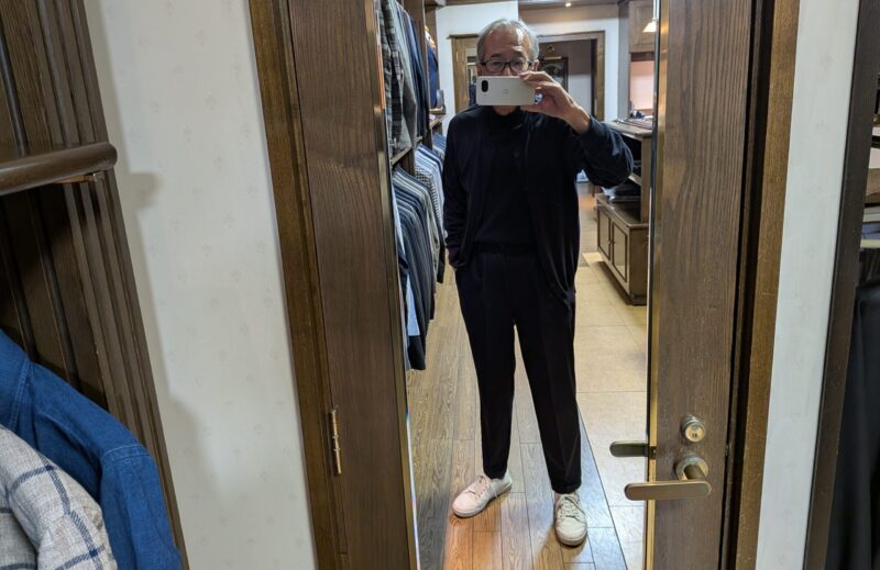 「ところで、スグルさん、まだタートルネックですか?」「いやいや、素材がウールからコットンに変わりました。」