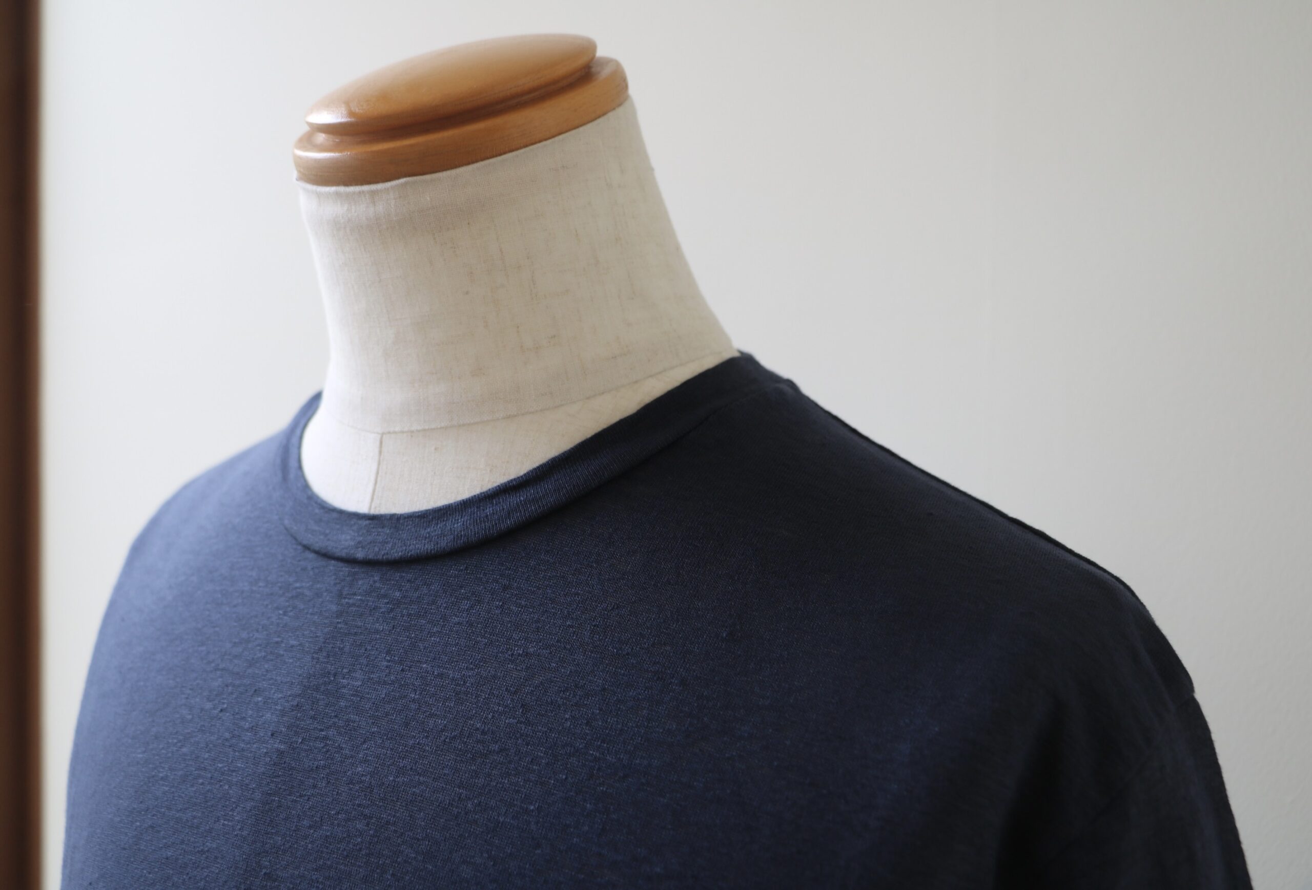 ブログで何度もリネン素材の魅力を語っていますが。簡単に言えば、吸水性・通気性・耐久性に優れていること。吸水性はコットンのおよそ4倍。速乾性も高く、汗をかいてもベタつかないので、汗かきの方にはぜひおすすめします。そして、天然繊維の中では最も丈夫であること。水に濡れると強度が約60%増すため、洗濯機で洗える気軽さ。繊維の中が空洞になっているため、夏は涼しく、冬は体温で暖まった空気を保ってくれるのもリネン素材の大きな特徴といえます。そして抗菌性。カビや雑菌の繁殖を抑えるという非常に衛生面でも優れた素材なんです。