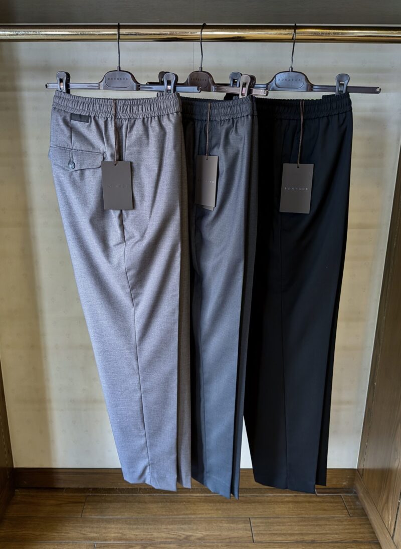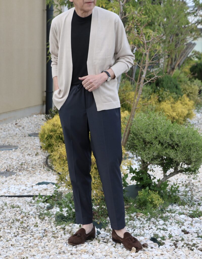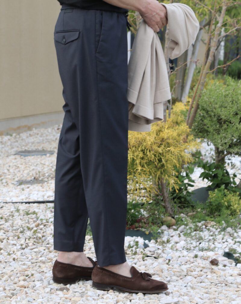 ボトムは冒頭写真、BONHEUR/ボネールのウールライクのフルシャーリングモデル「San Vito」。真ん中のブルーグレイのサイズ32を穿いています。他の色も無くなる前に撮影しておけば良かったと、陽がかげてから後悔です。