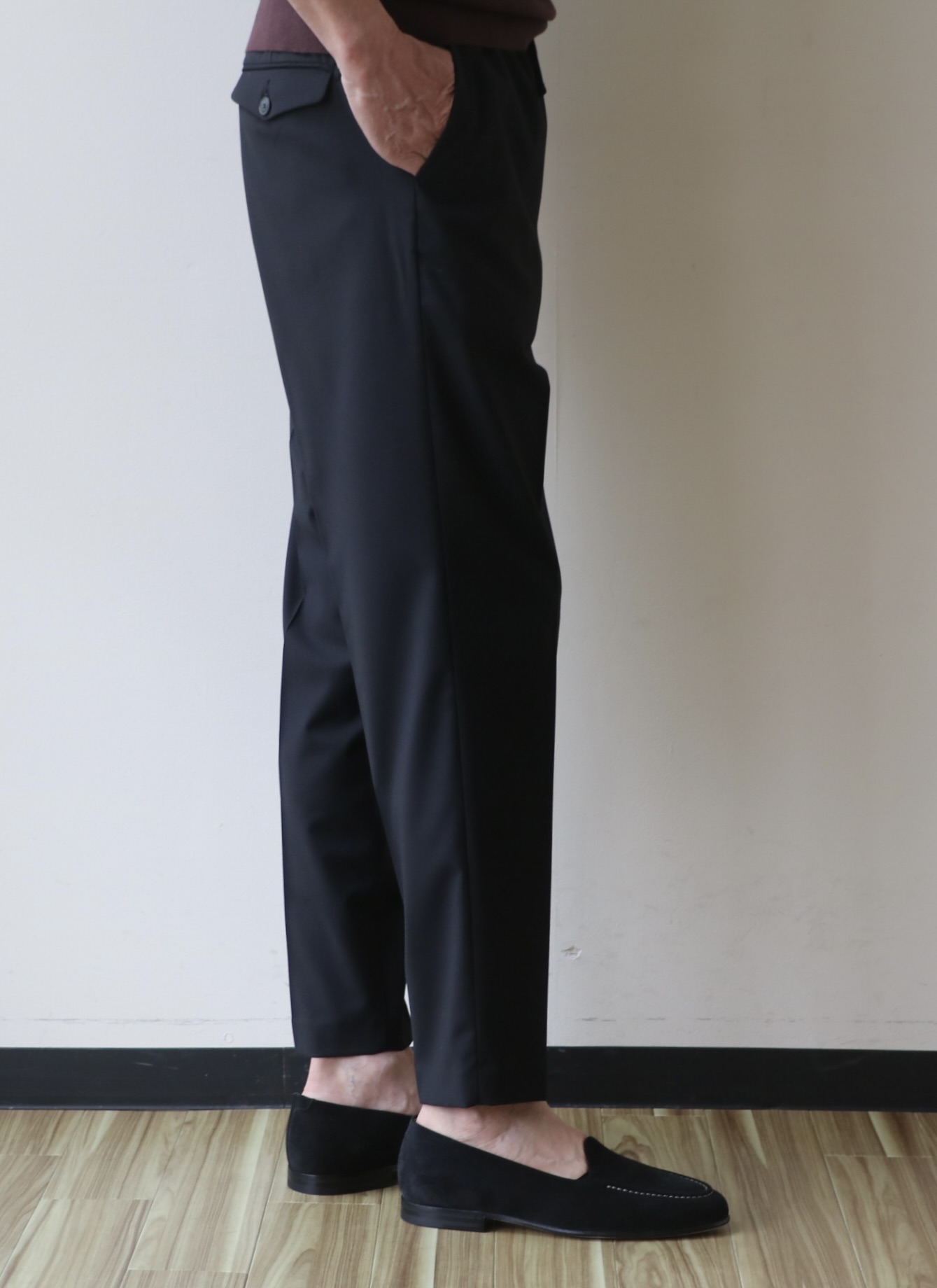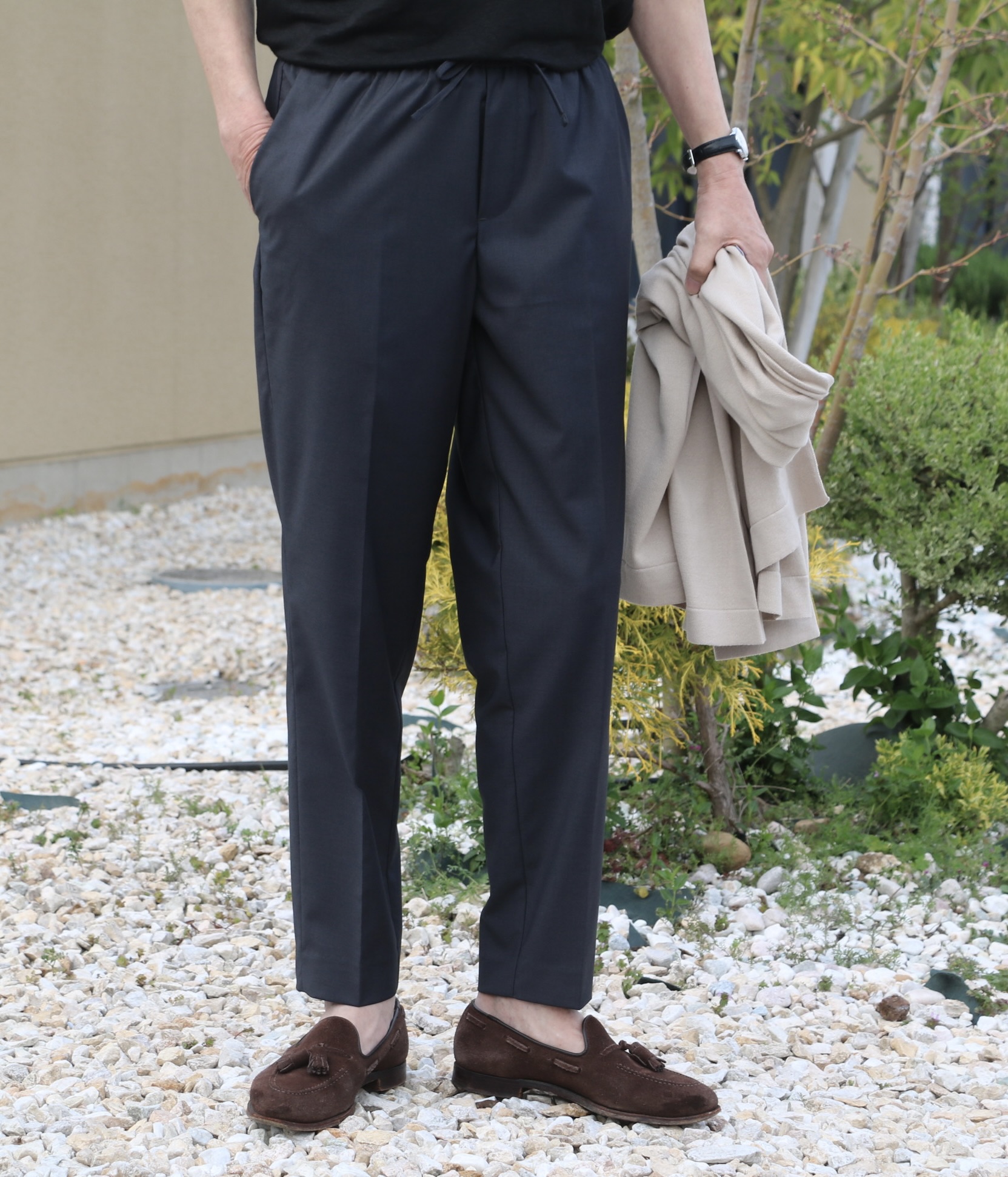 さりげない光沢感と滑らかな落ち感が評価を得ています。太いパンツは苦手という方にもお勧めしやすいシルエットです。