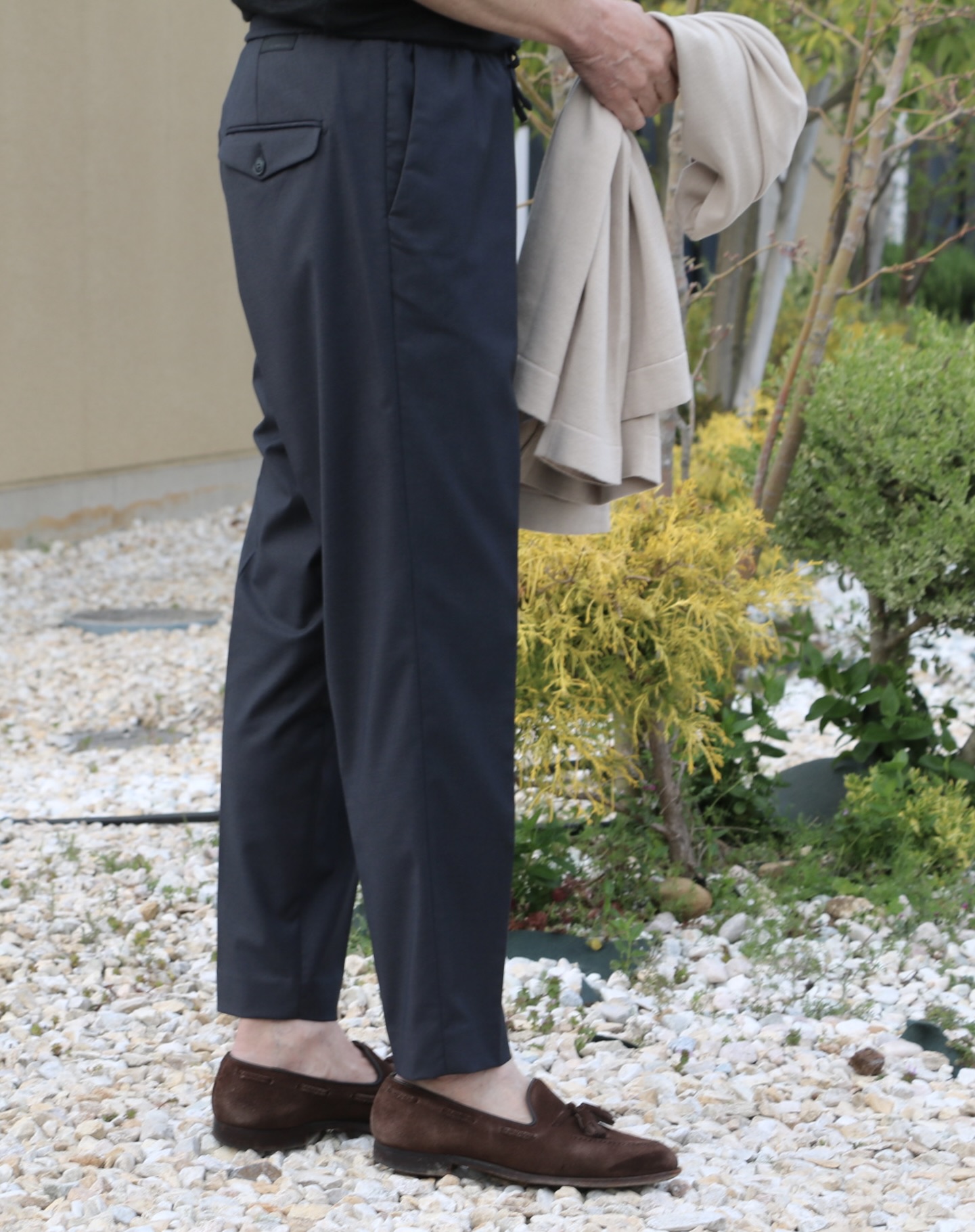 今春で三度目のセレクトとなる【BONHEUR/ボネール】の「San vito」ポリエステルレーヨンストレッチパン。またの名を「San vito」ウールライク ドローコード付きフルシャーリングパンツです。振り返ってみると、デビューが2024年4月19日のブログ。翌年は一日違いの4月18日のブログでした。今年は半月ほど早いご案内です。昨年、1.000円の値上がりでしたが、今季は据え置きです。為替の影響で多くのブランドが大幅に値上がりしている中、驚くべきことです。