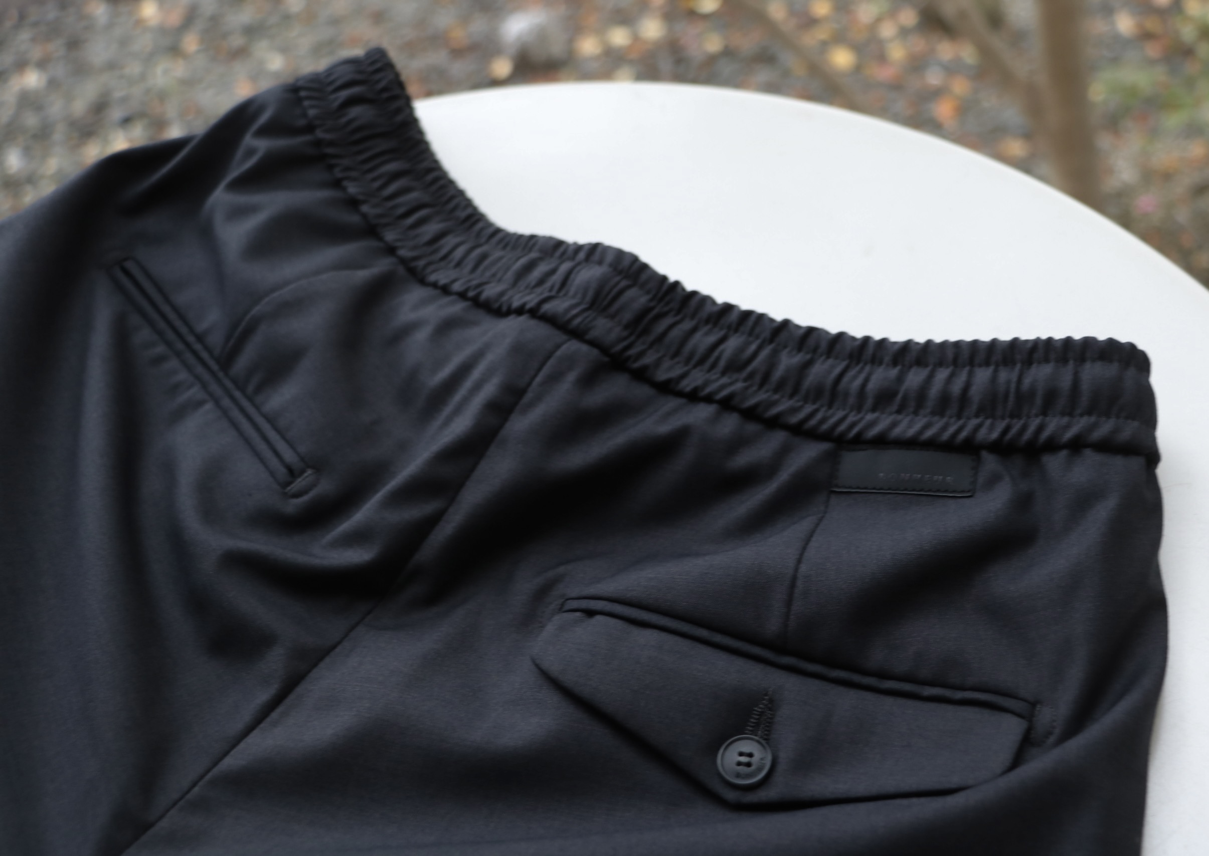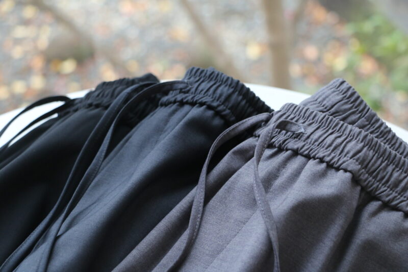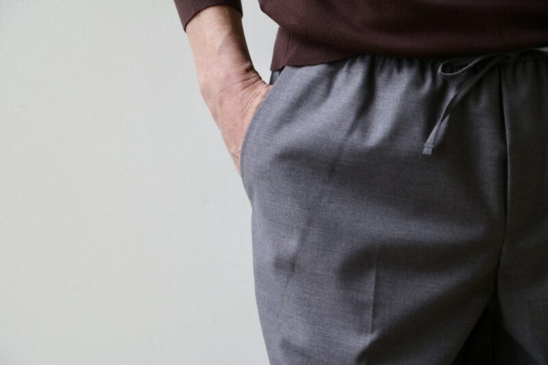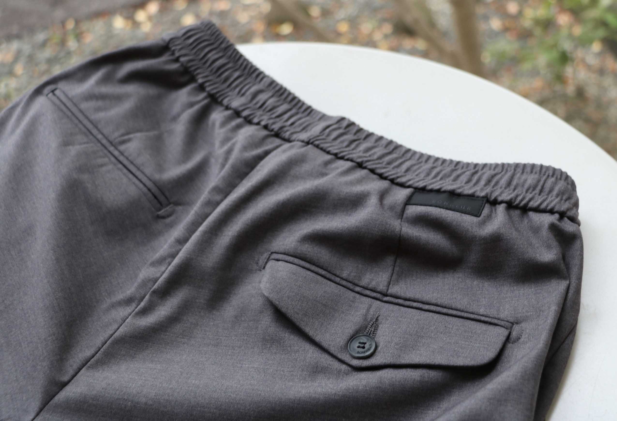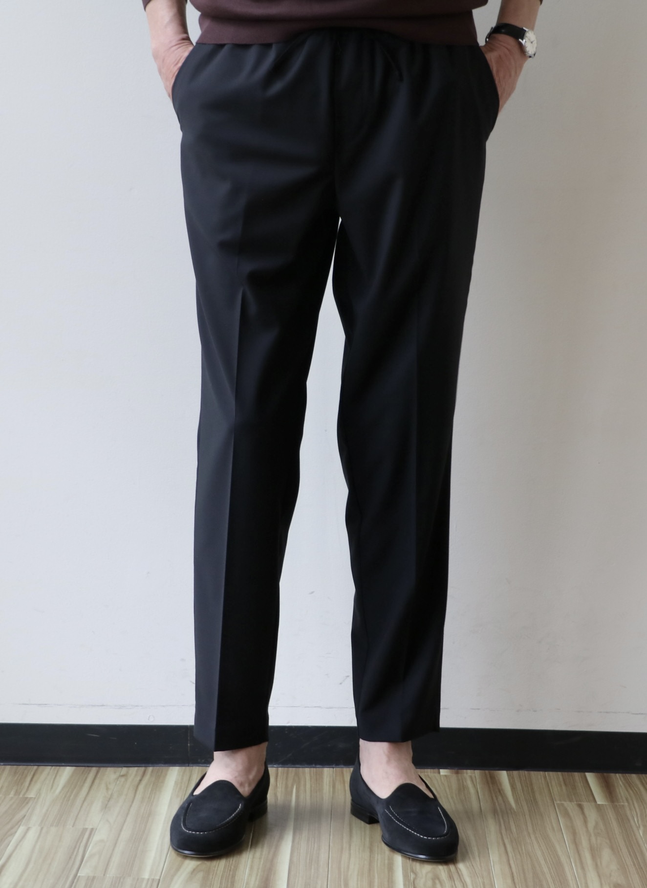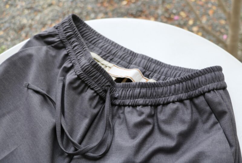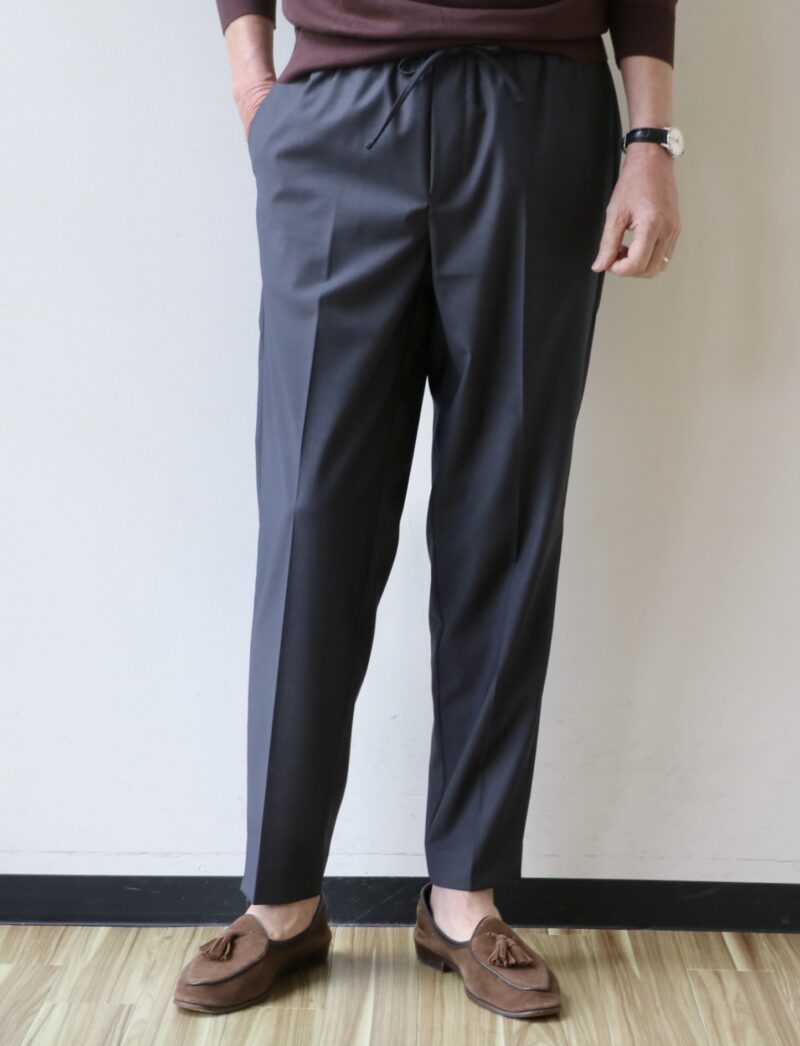 フルシャーリングのドローコード付きイージーパンツのモデル名は「San vito/1204」。ポリエステル・レーヨン・ポリウレタンのウールに似た機能素材です。
