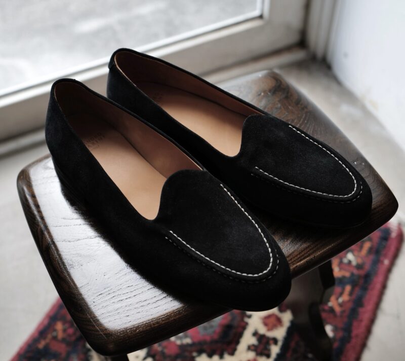 個人的な話で恐縮です。左親指の先を負傷している私スグルシニアですが、ずいぶん回復してきており、気温が上がる前に手に入れておこうかと思っているのが、【ALESSANDRO GASPARINI/アレッサンドロガスパリーニ】のローファー。ブランドについては、こちらをご覧いただくとして、どこが素敵かといえば、ブラックスェードにホワイトエクリュの糸を使ったモカシン縫い。このコントラストがエレガントさだけではない遊び心のある隙を見せてくれるのです。オヤジ臭さのない爽やかさとでもいうのでしょうか。サイズ41でジャスト。軽快でソフトな履き心地です。