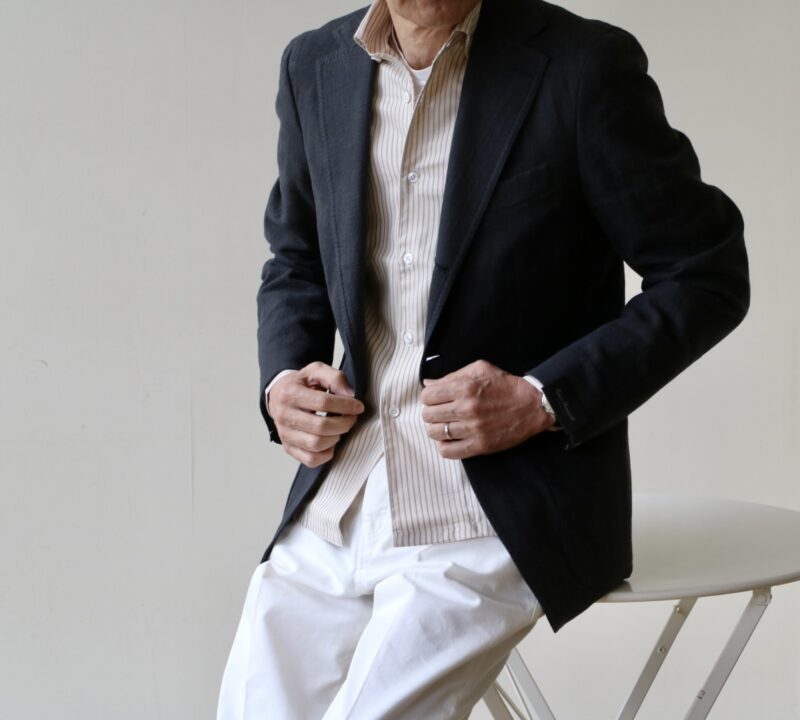 この写真は、【Errico Formicola/エリコ フォルミコラ】の「ANDREA」リネン・コットン フェードブラックジャケットをご紹介させていただいた際に、予備として撮影していました。本日、サイズ50が旅立っていきました。いつもありがとうございます。