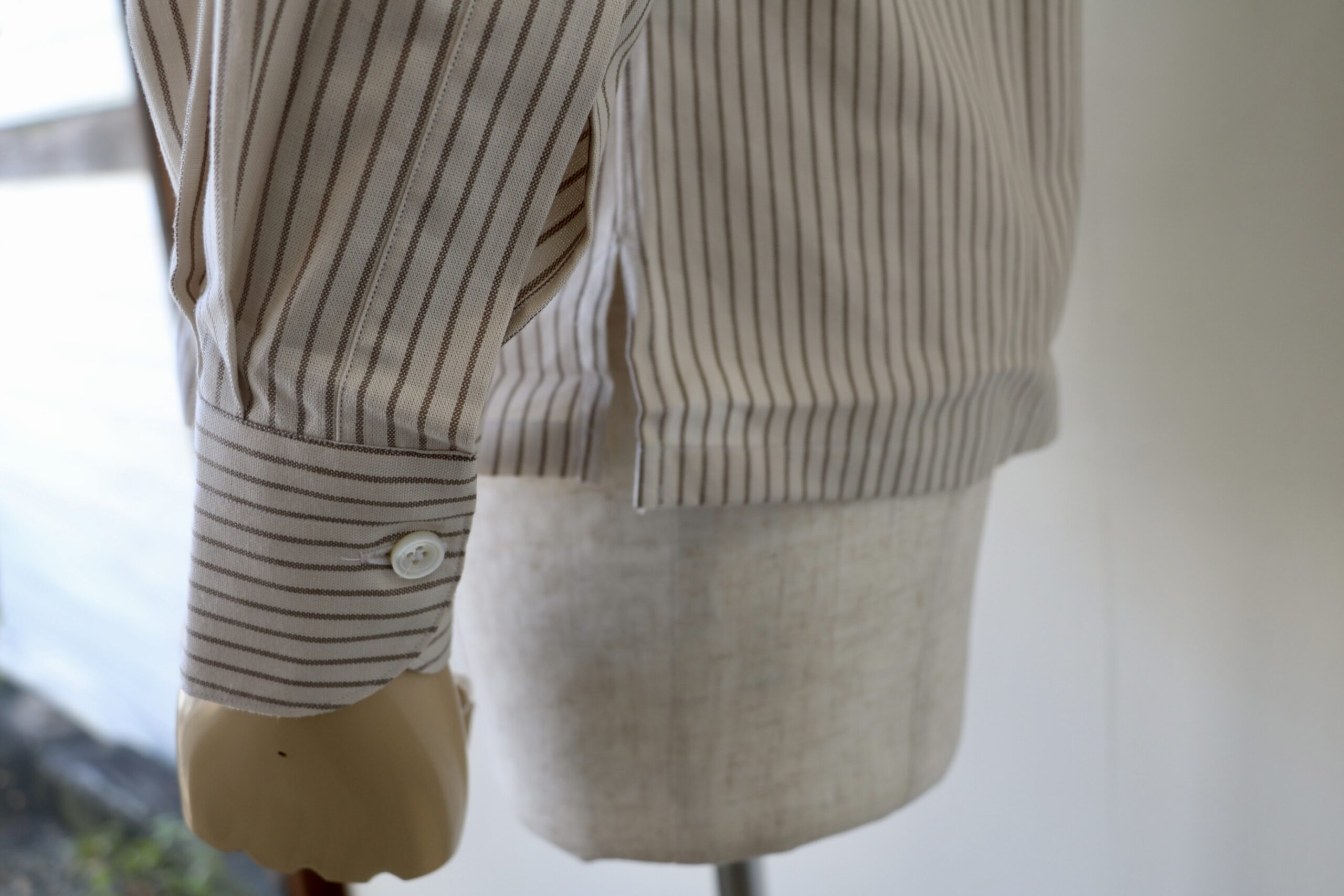余談です、トルソー君はほぼ私と体型が似ております。サイズ38をきてもらいましたが、ややタイトに見えるかもしれません。秋に展開した「AC93」と比べると、サイズは小さめになります。