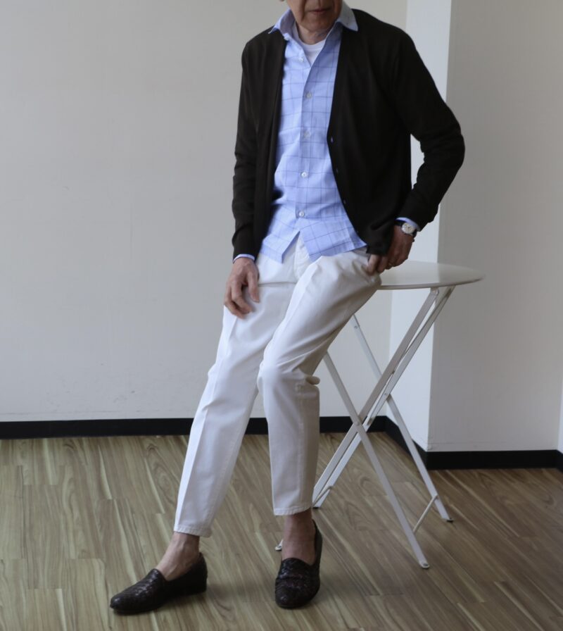 年齢のせいでしょうか。昔は私も夜行型でしたが、、ここ数年、特に今年になってからは早起きです。本日、開店前に撮影した、今週のご提案アイテムです。左からDANIELE FIESOLI/ダニエレフィエゾーリのドライコットン半袖クルーニット(本体価格22.000円)、同素材のカーディガン(32.000円)、Errico Formicola/エリコ フォルミコラのシャツはストライプ柄(36.000円)とチェック柄(39.000円)、BONHEUR/ボネールのホワイトチノ(27.000円)にブラウンリネンパンツ(33.000円)になります。何からご紹介していきましょうか。