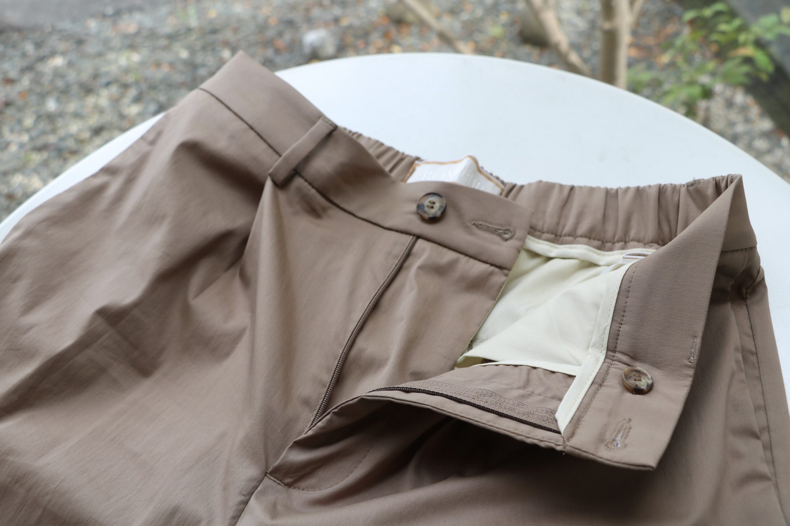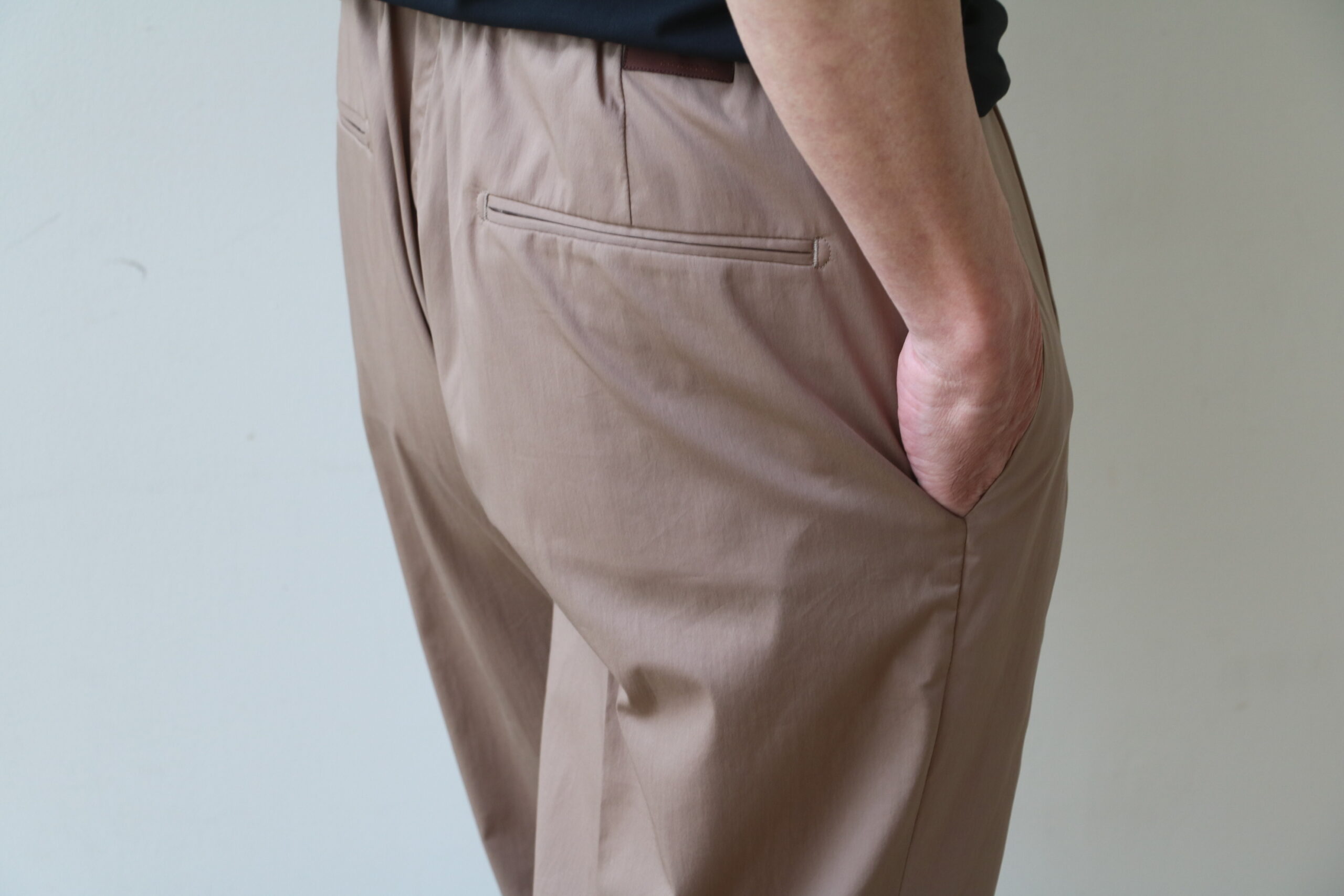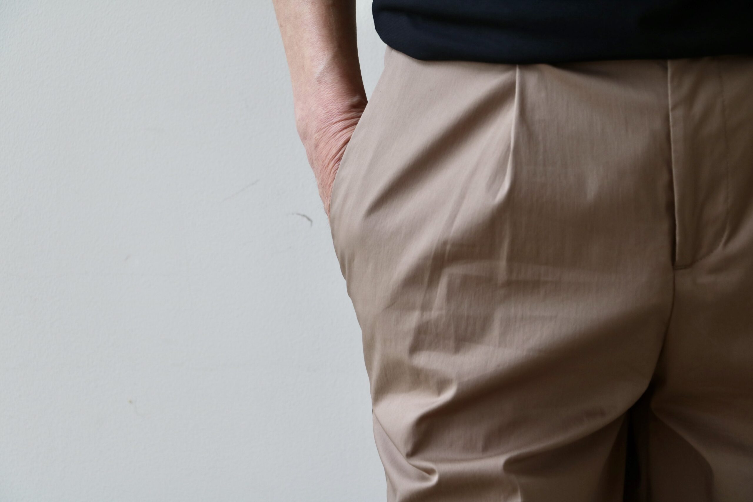 モデルは、ワンプリーツ入りバックシャーリングの「Ciolo」。気温が上がるほどに注目度も上がる、キレイめなイージーパンツです。