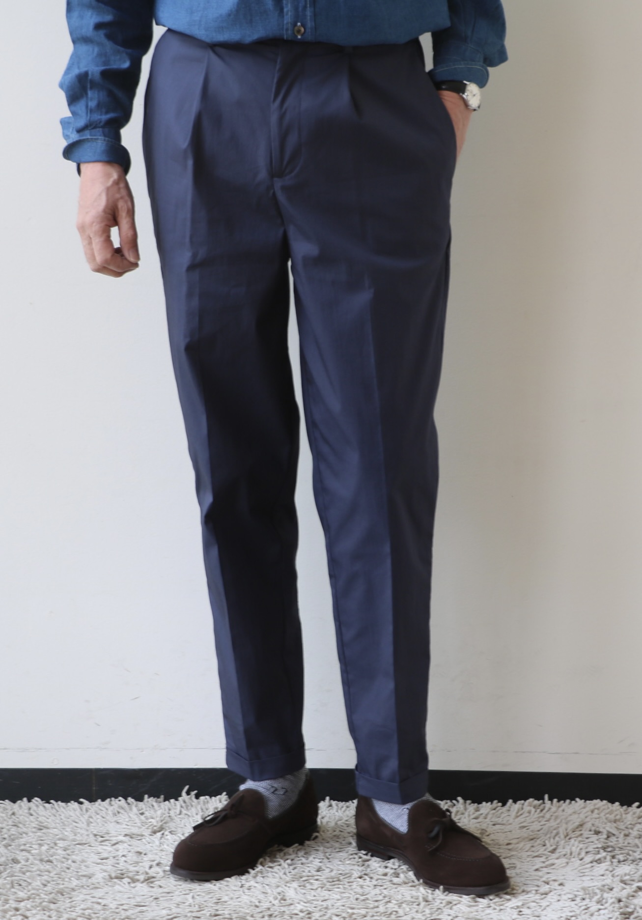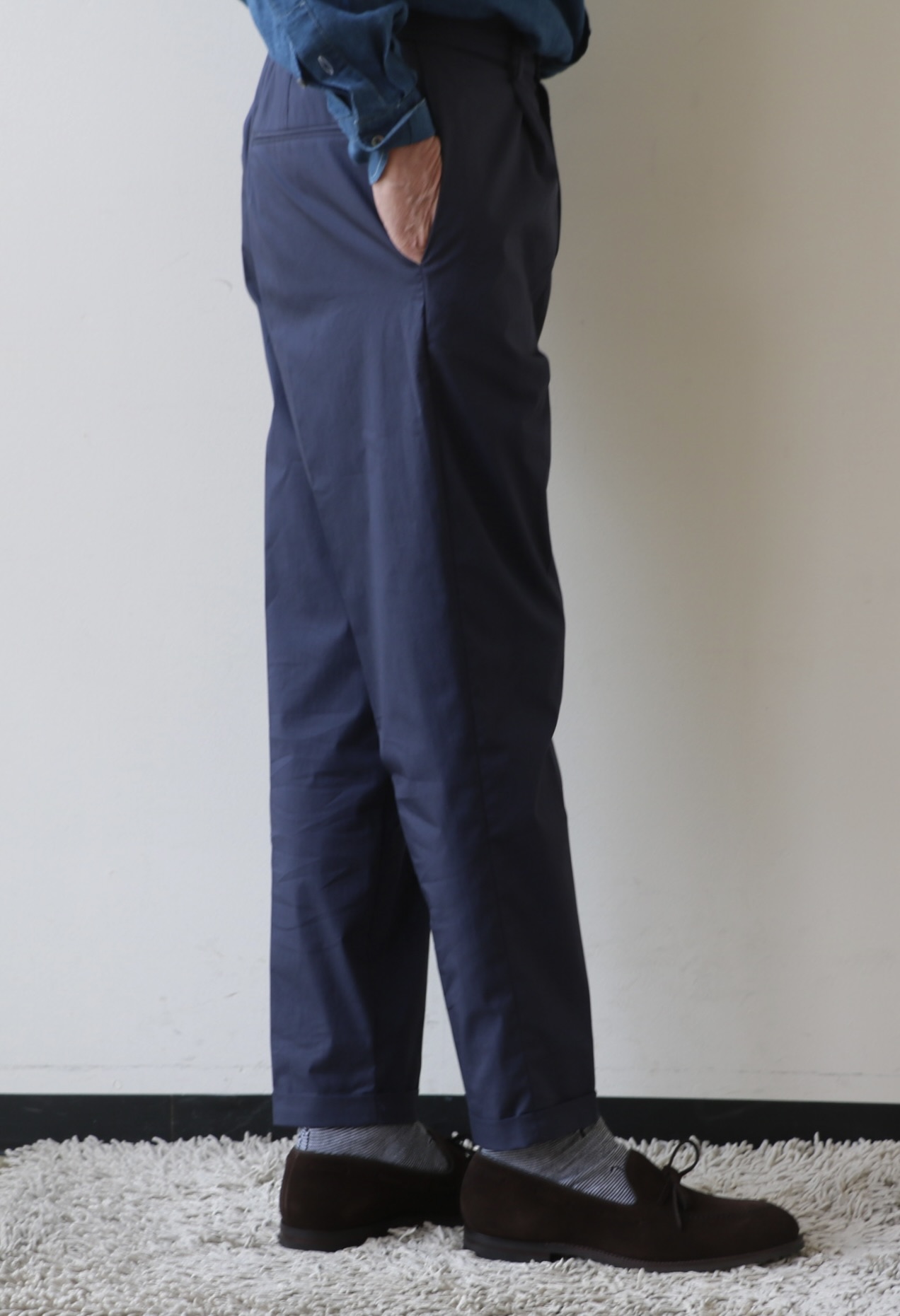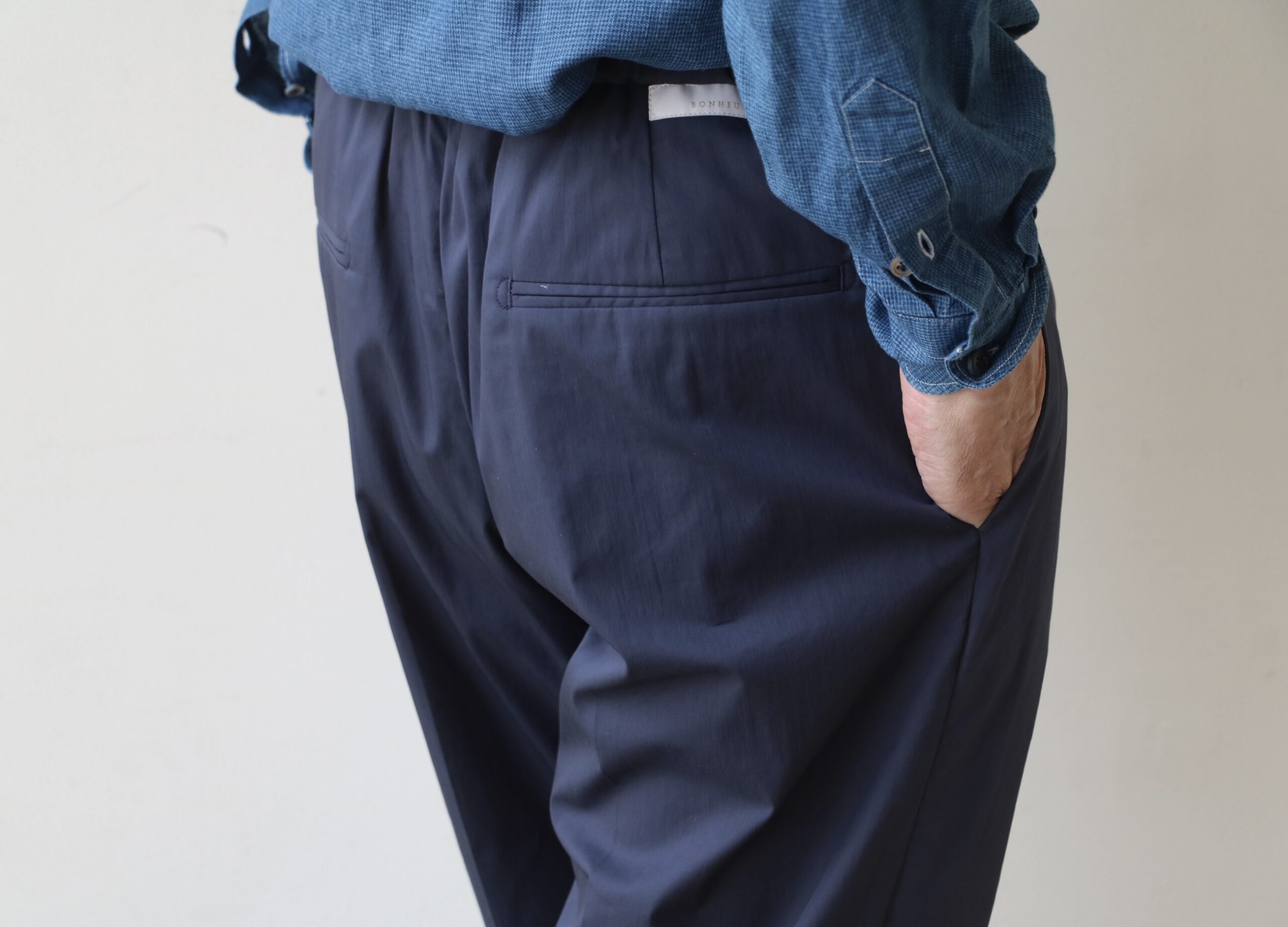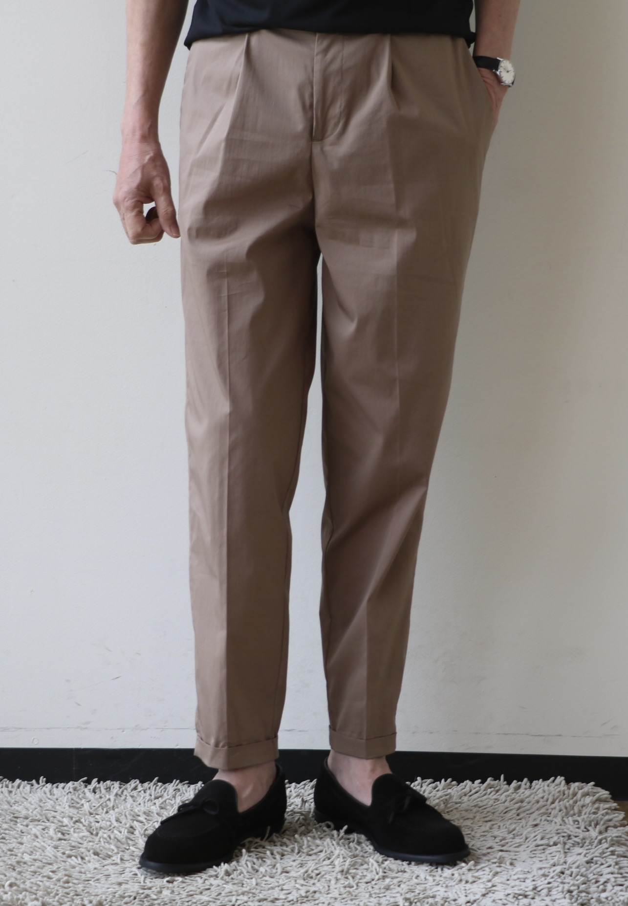モデルは、ワンプリーツ入りバックシャーリングの「Ciolo」。気温が上がるほどに注目度も上がる、キレイめなイージーパンツです。