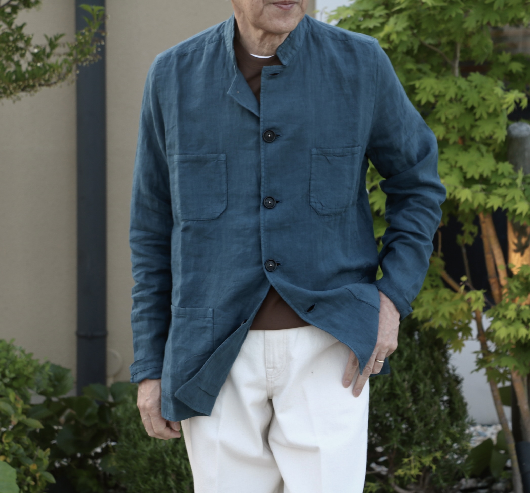 ガーメントダイリネンスタンドカラージャケット