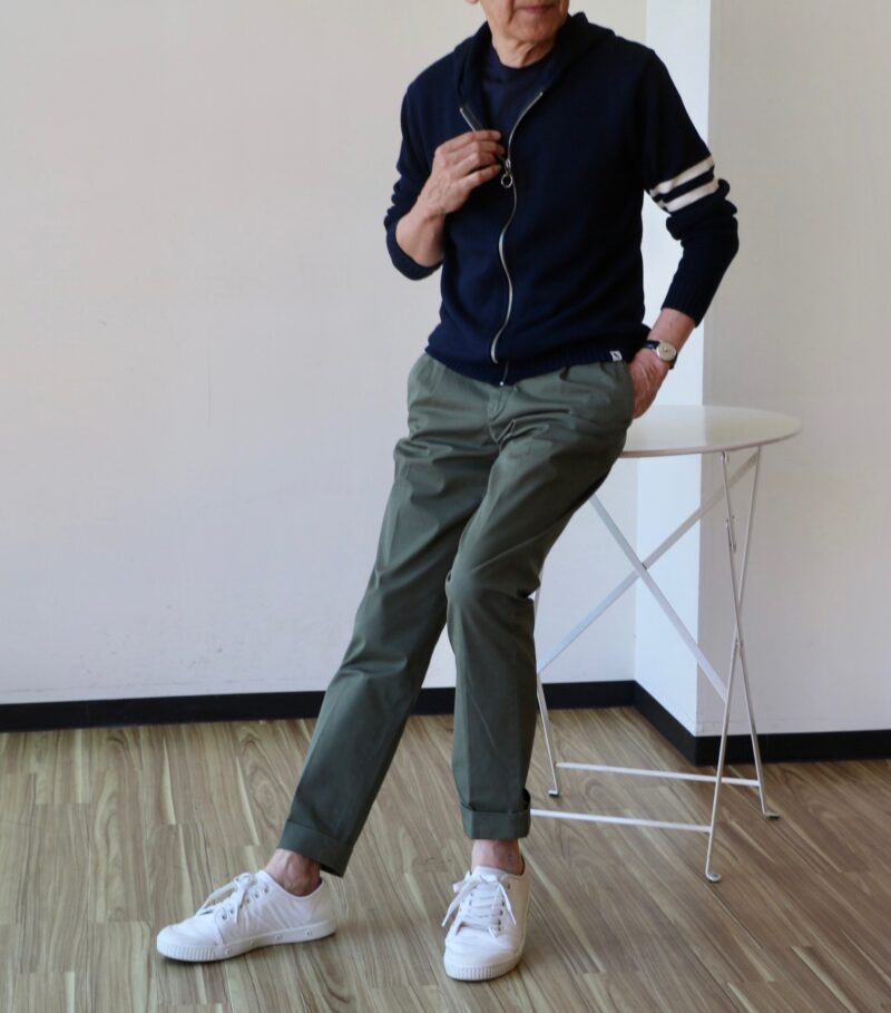 ニットパーカー【PEREGRINE/ペレグリン】、チノパンツ【G.T.A/ジーティーアー】