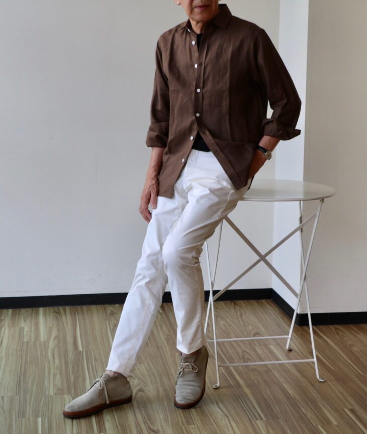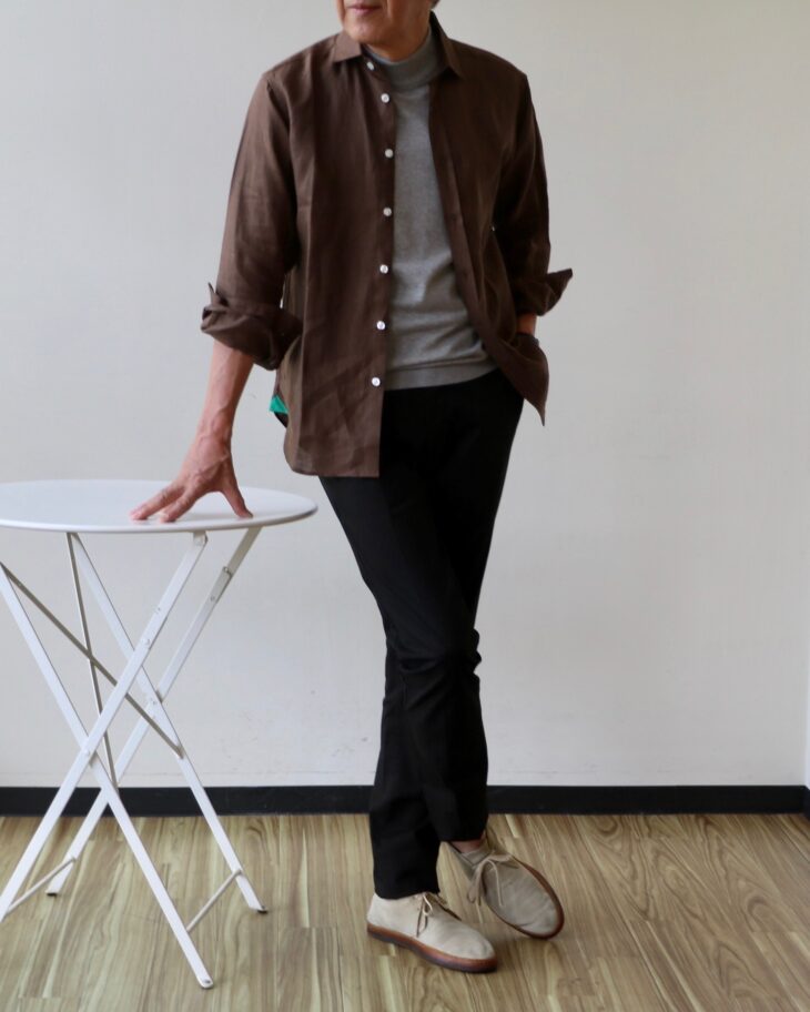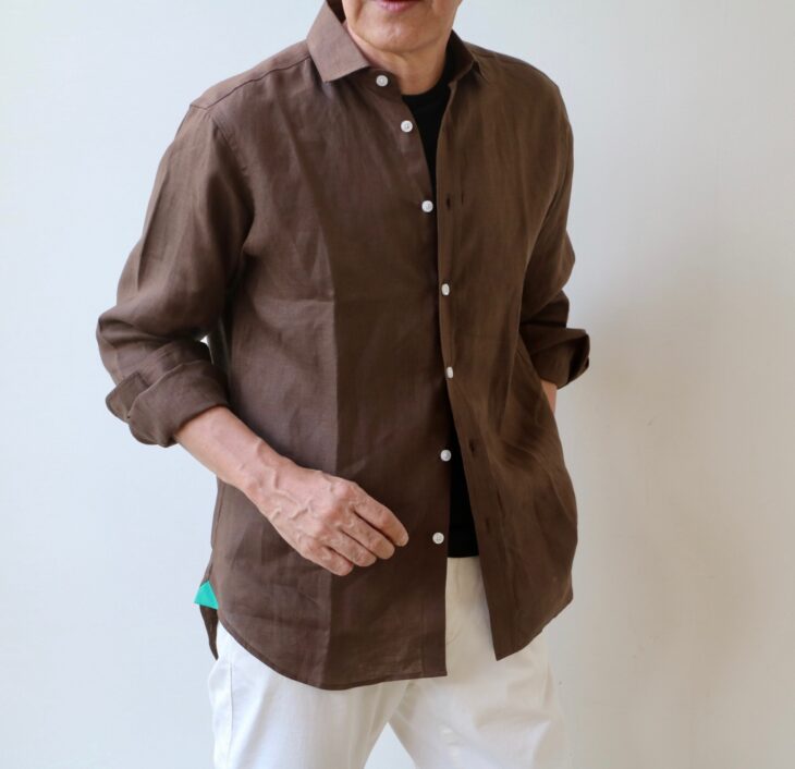 そこでオススメするのが、James Mortimer/ジェームズモルティマーのアイリッシュリネンシャツ。その効果は購入された方が誰も感じること。私もその一人です。色違いで購入される方が多く、現在、ブラウンとグレイだけになってしまいましたが、どちらの色も秋に使いやすいはずです。